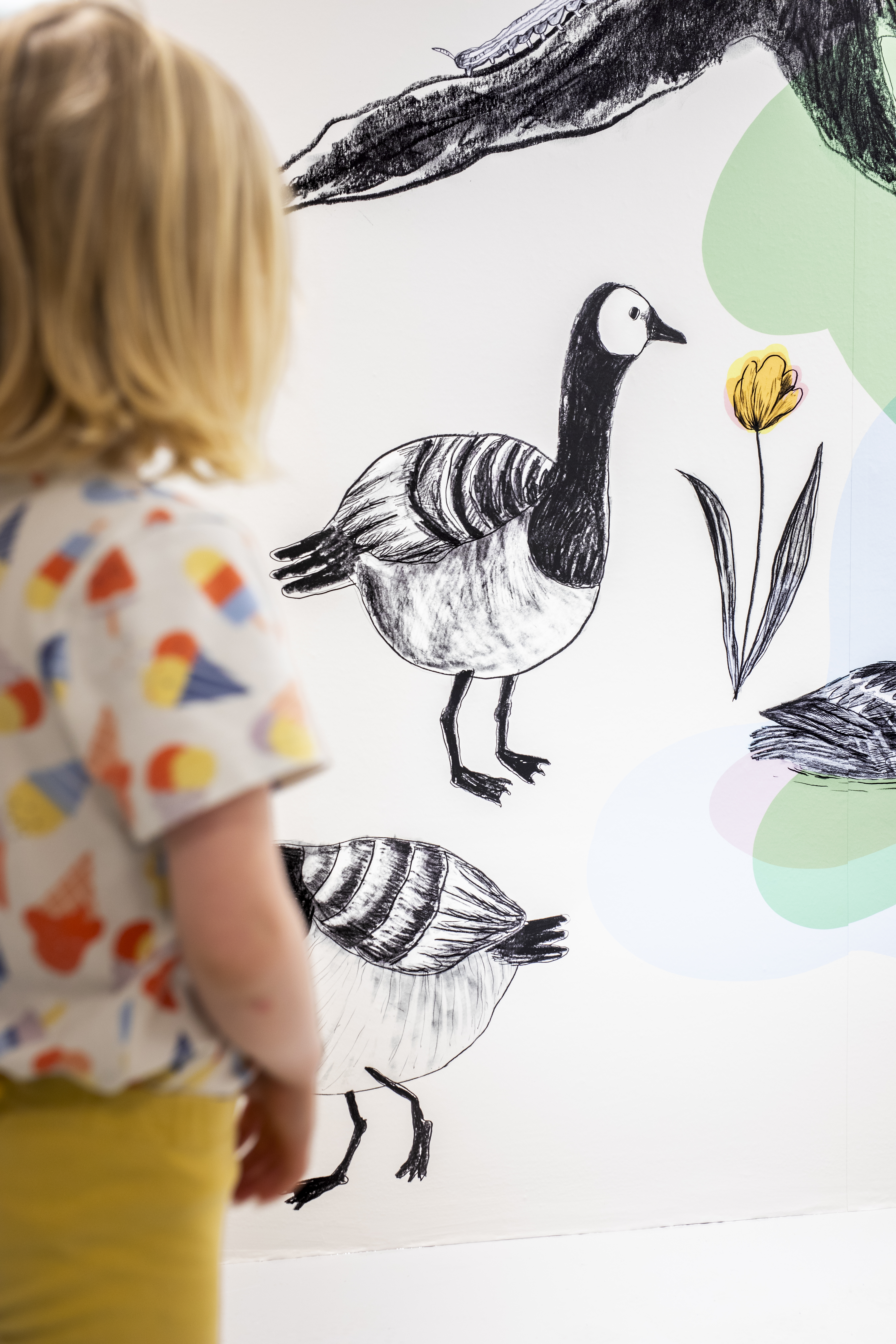 Metsän ihmeet näyttäytyvät koulun sisätiloissa vanhoista biologian ja kasvitieteen kuvituksista ammentavassa teoksessa. Kuvansiirtoa ja piirtämistä yhdistävässä teoksessa metsän taika rönsyää monimuotoiseksi rihmastoksi, jonka suojasta hyönteiset, linnut, nisäkkäät ja matelijat pilkistävät.