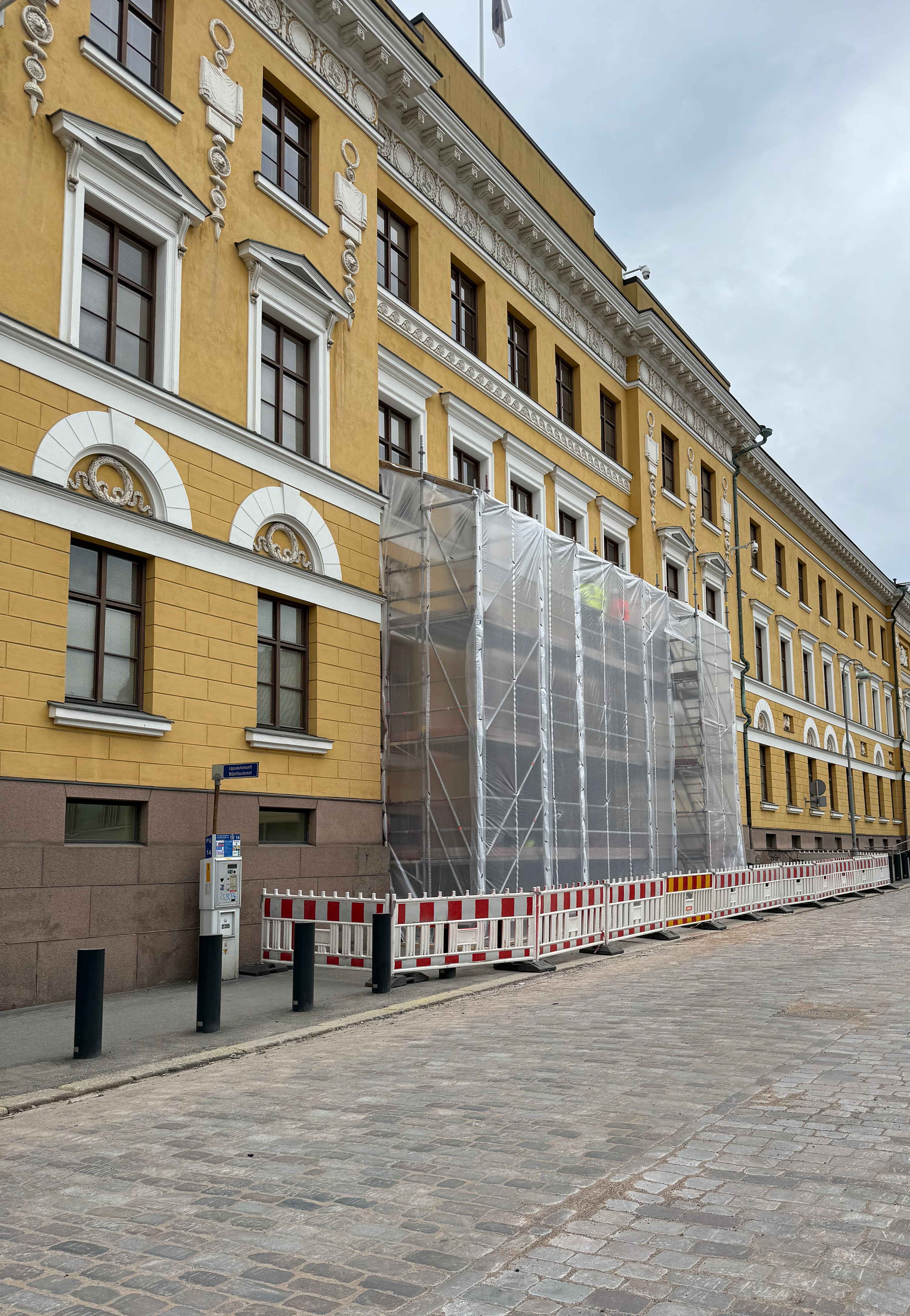 Puolustusministeriön sisäänkäynnin töhryjen puhdistus etenee