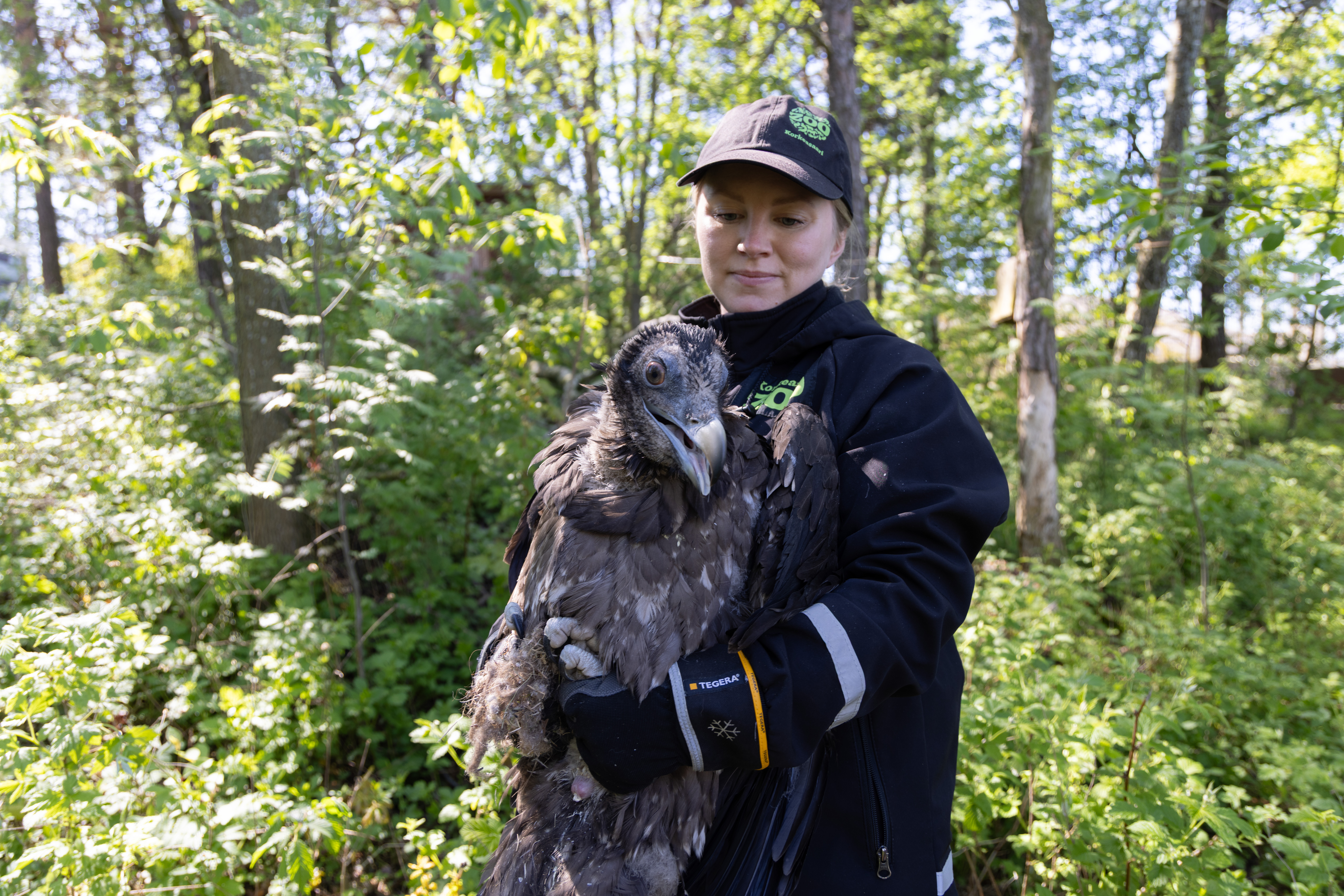 Ushuaia-nimen ranskalaisilta saaneen Korkeasaaren partakorppikotkan odotetaan lähtevän pesästä kesäkuun lopulla. Sillä on nilkoissaan punaiset tunnistusrenkaat, siivissään valkaistut merkit ja selässään pieni GPS-lähetin, joiden avulla linnun liikkeitä voidaan seurata.