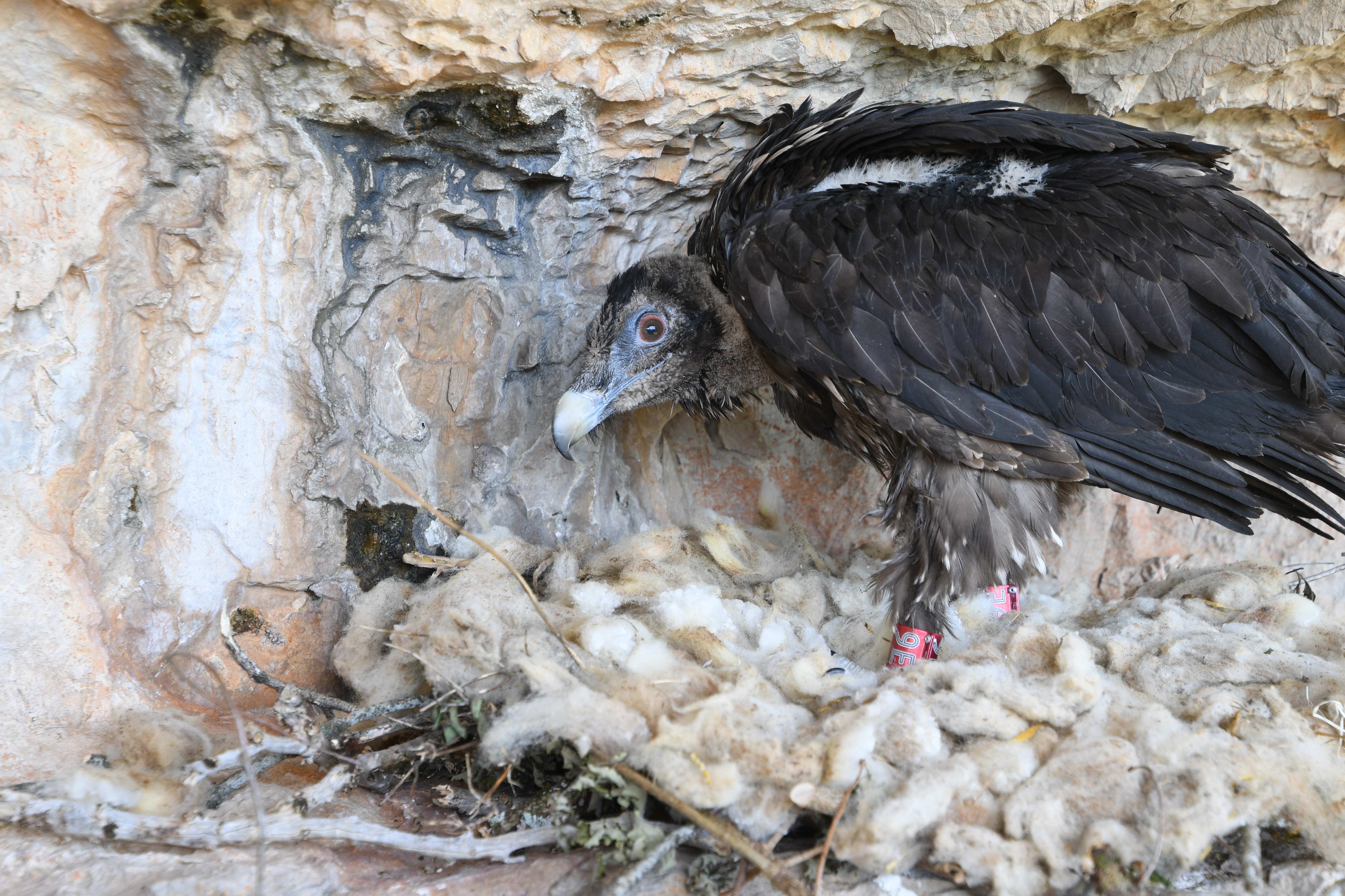 Maaliskuun alussa Korkeasaaressa kuoriutunut partakorppikotkanaaras on 5,4-kiloinen ja asuu vuorenjyrkänteelle tehdyssä keinopesässä tšekkiläisen eläintarhan samanikäisen koiraslinnun kanssa. Nuoria lentokyvyttömiä lintuja ruokitaan ilman ihmiskontaktia, kunnes ne ovat valmiita nousemaan siivilleen uudella kotiseudullaan, Grands Caussesin kansallispuistossa, Ranskan keskiylängön vuoristoisissa maisemissa.