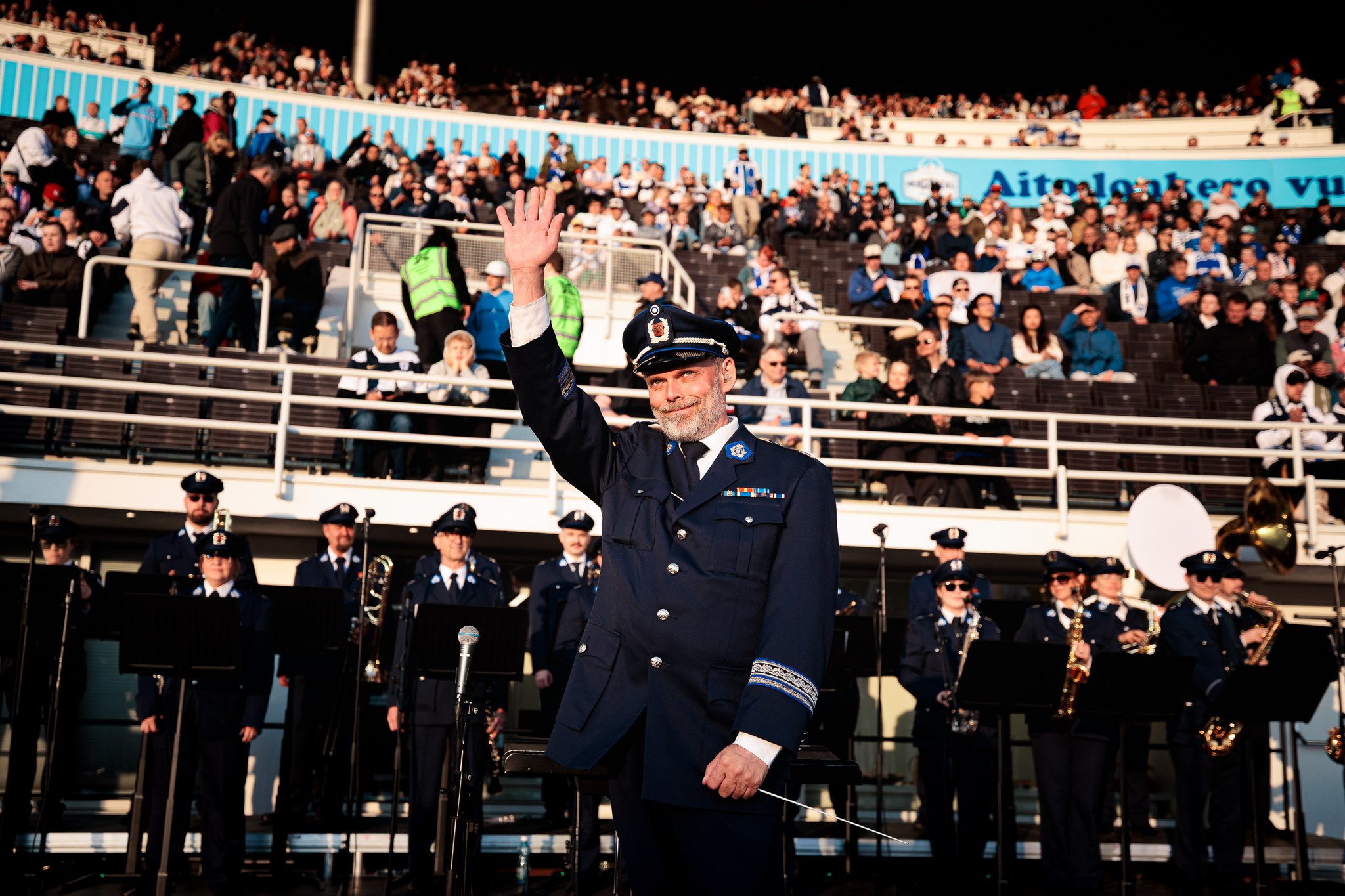 – Kannatuslaulua ei voi määrätä, fanit päättävät itse, että ottavatko he uuden biisin omakseen. Edes Maamme ei ole määrätty kansallislauluksemme, se vaan on. Odotamme innolla, että ottaako kansa Huuhkajat-kappaleen omakseen, sanoo Helsingin poliisisoittokunnan intendentti Lassi Ikäheimo.