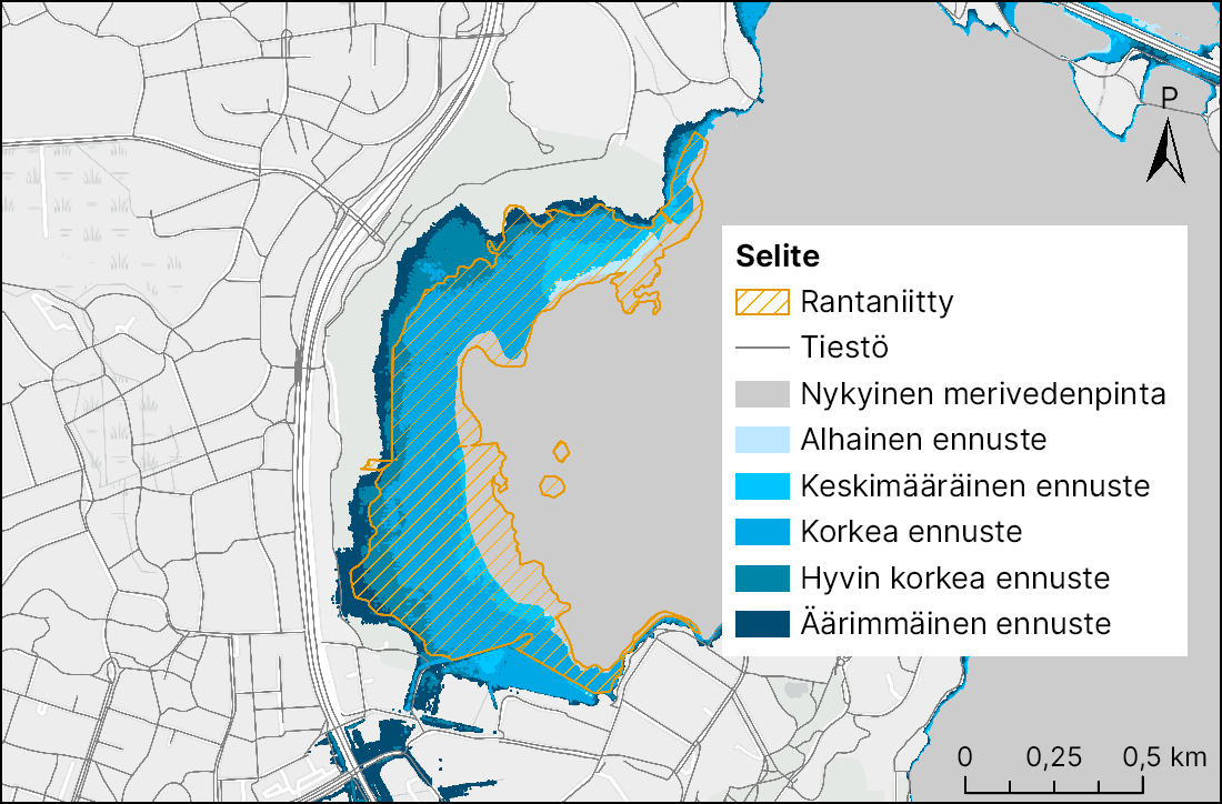 Tutkimuksessa keskityttiin Suomenlahden rannikkoon, koska siellä maankohoaminen on heikointa ja merenpinta kääntyy siksi nousuun nopeammin kuin pohjoisempana. Myös Pohjanlahden rannikko on alttiina muutoksille, vaikka maankohoaminen hidastaa vaikutuksia.
