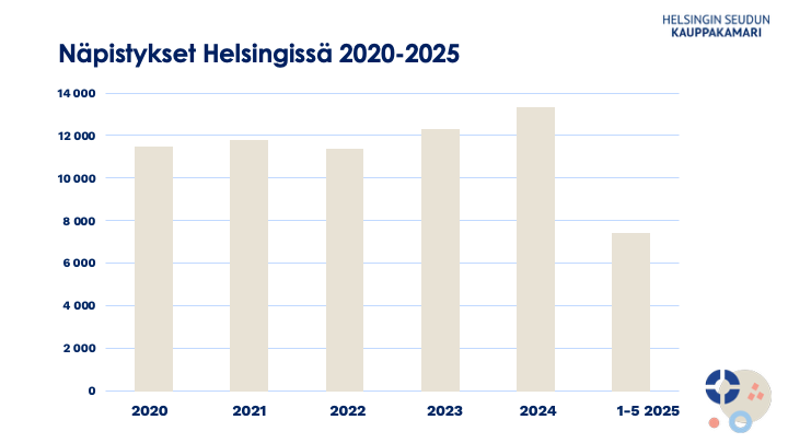 Helsingissä tehtiin Poliisin mukaan yli 7 400 näpistystä tammi-toukokuussa 2025. Viime vuonna samaan aikaan näpistyksiä oli 4 615.