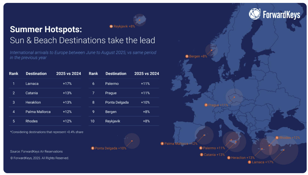 Kesän 2025 lentovarausten kasvukohteet Euroopassa: