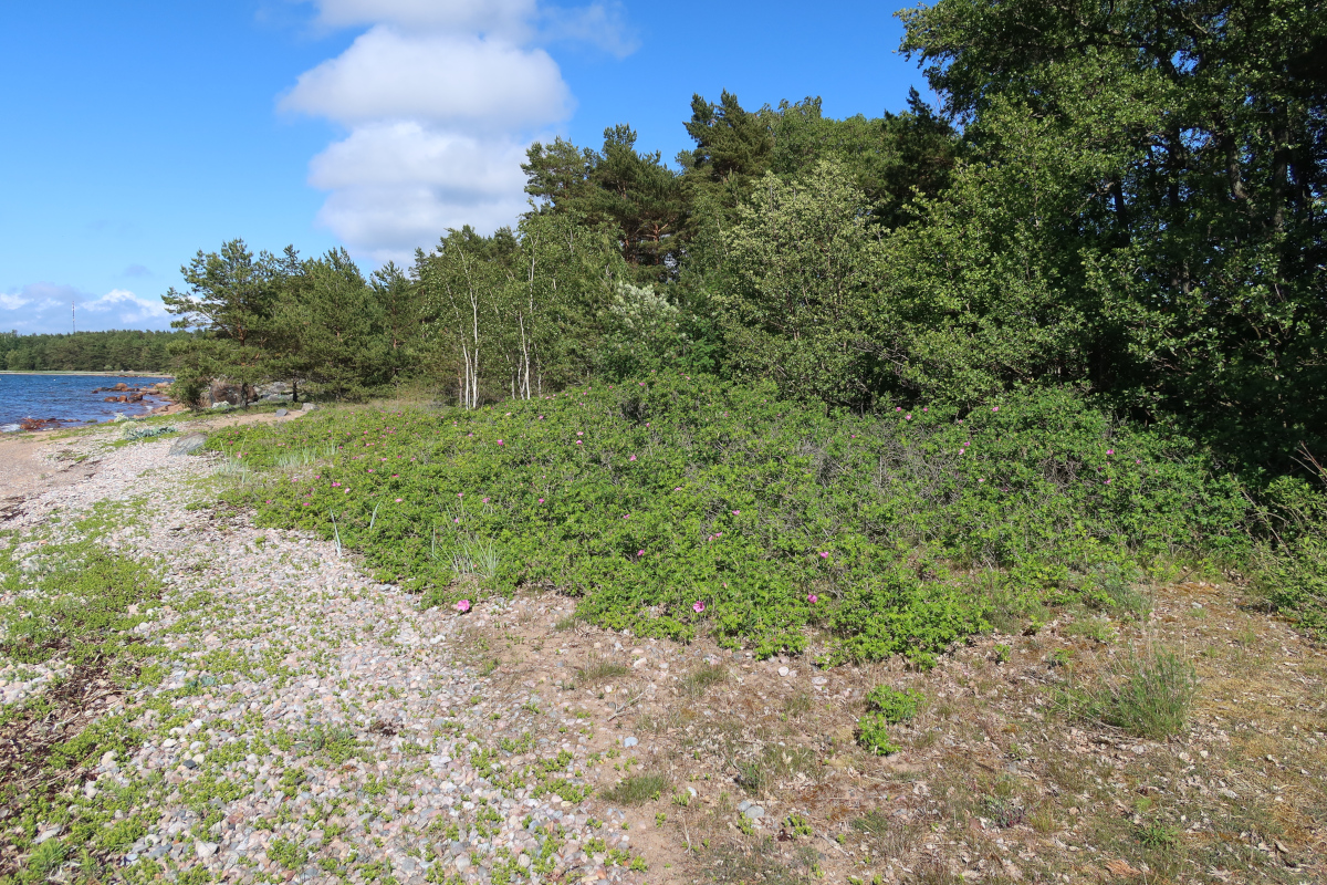 På Hangö stads ägda stränder vårdas strandnaturen sommaren och hösten 2025. Särskilt bekämpas den invasiva arten vresros. Restaureringsarbetena är en del av livsmiljöprogrammet Helmi.