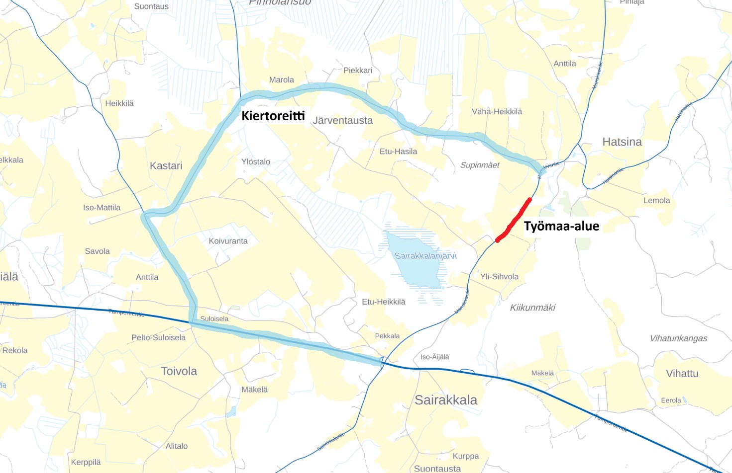 Vt 12 Tampereentie-Kastarintie suljettu alustavasti 1.8.2025 asti
