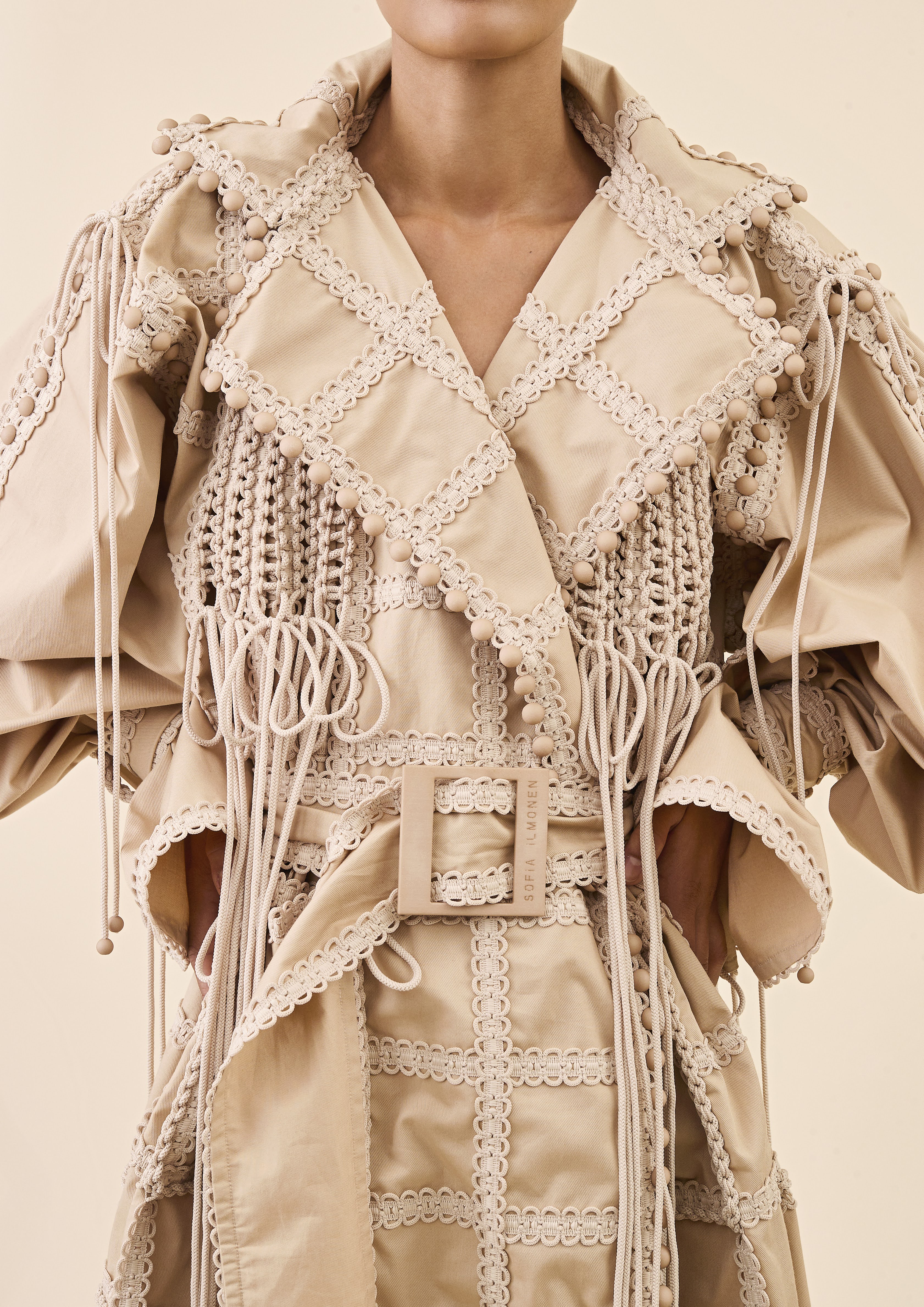 ”Modulaarisuus tarkoittaa minulle sitä, että vaatteet rakennetaan rakennuspalikoista. Palaset kiinnitetään toisiinsa kaksikantaisilla napeilla, mikä mahdollistaa sen, että ne voidaan purkaa osiin ja koota aina uudella tavalla. Minulle tämä on vaatteen pitkäikäisyyden ajattelemista uudella tavalla,” Ilmonen kertoo.