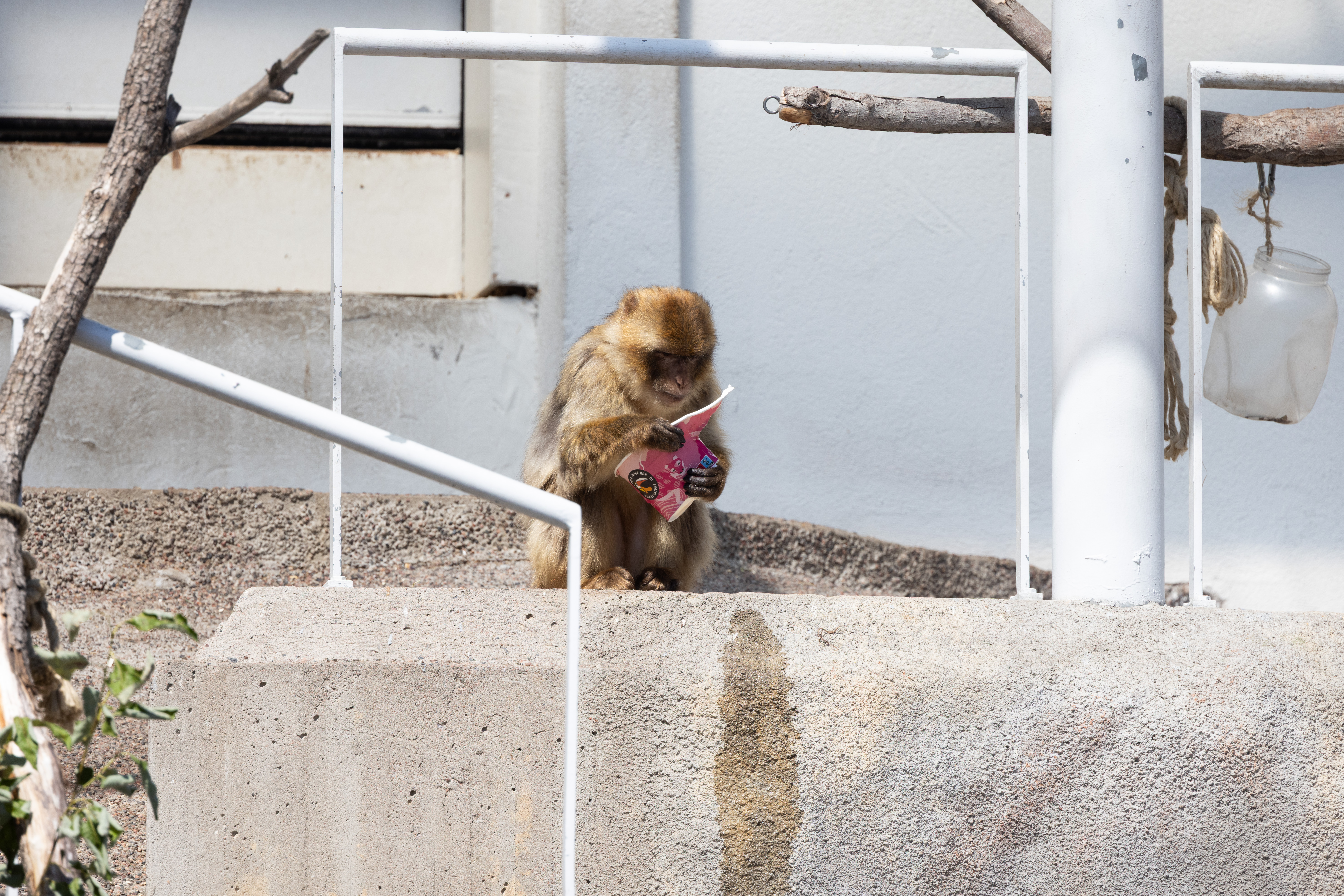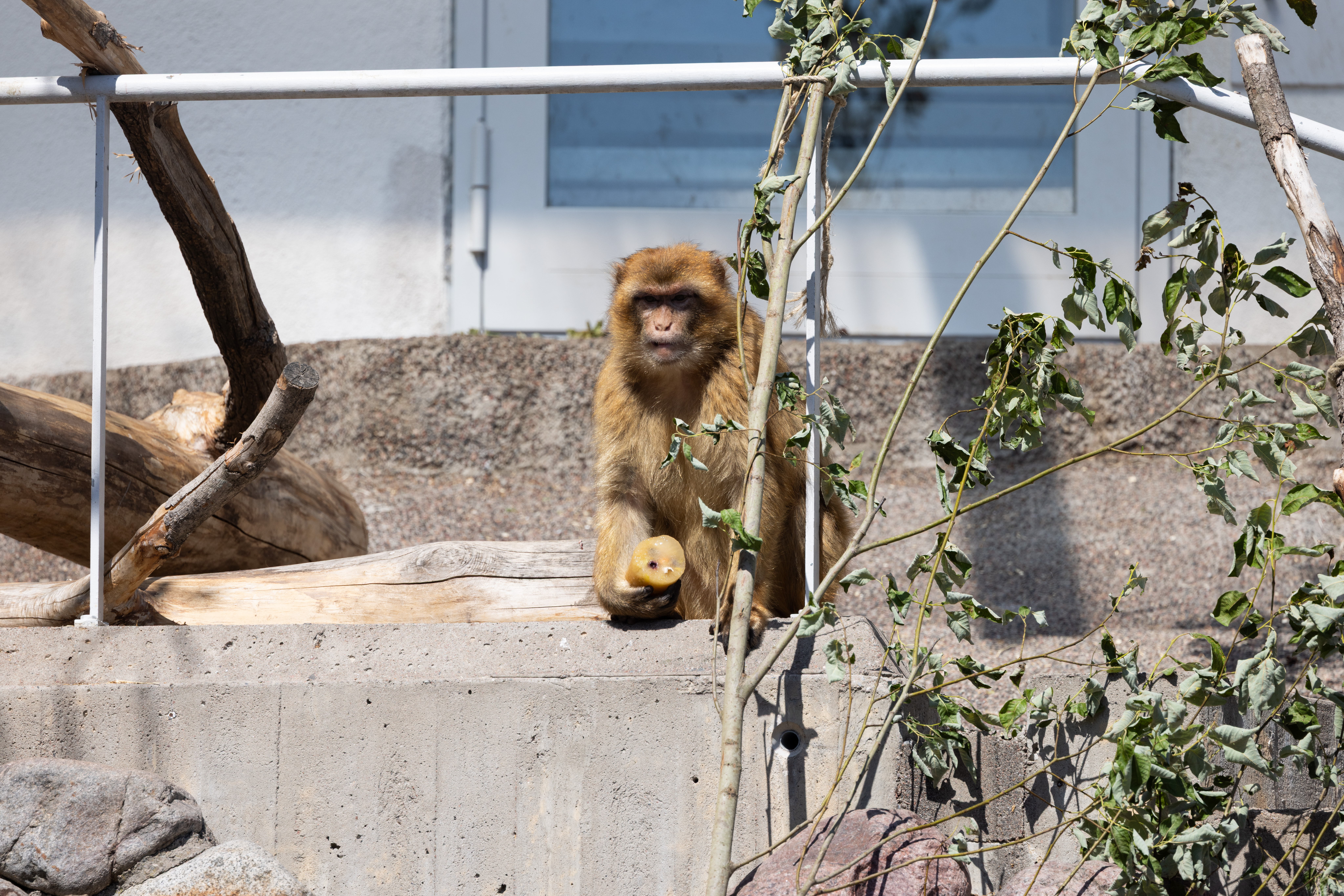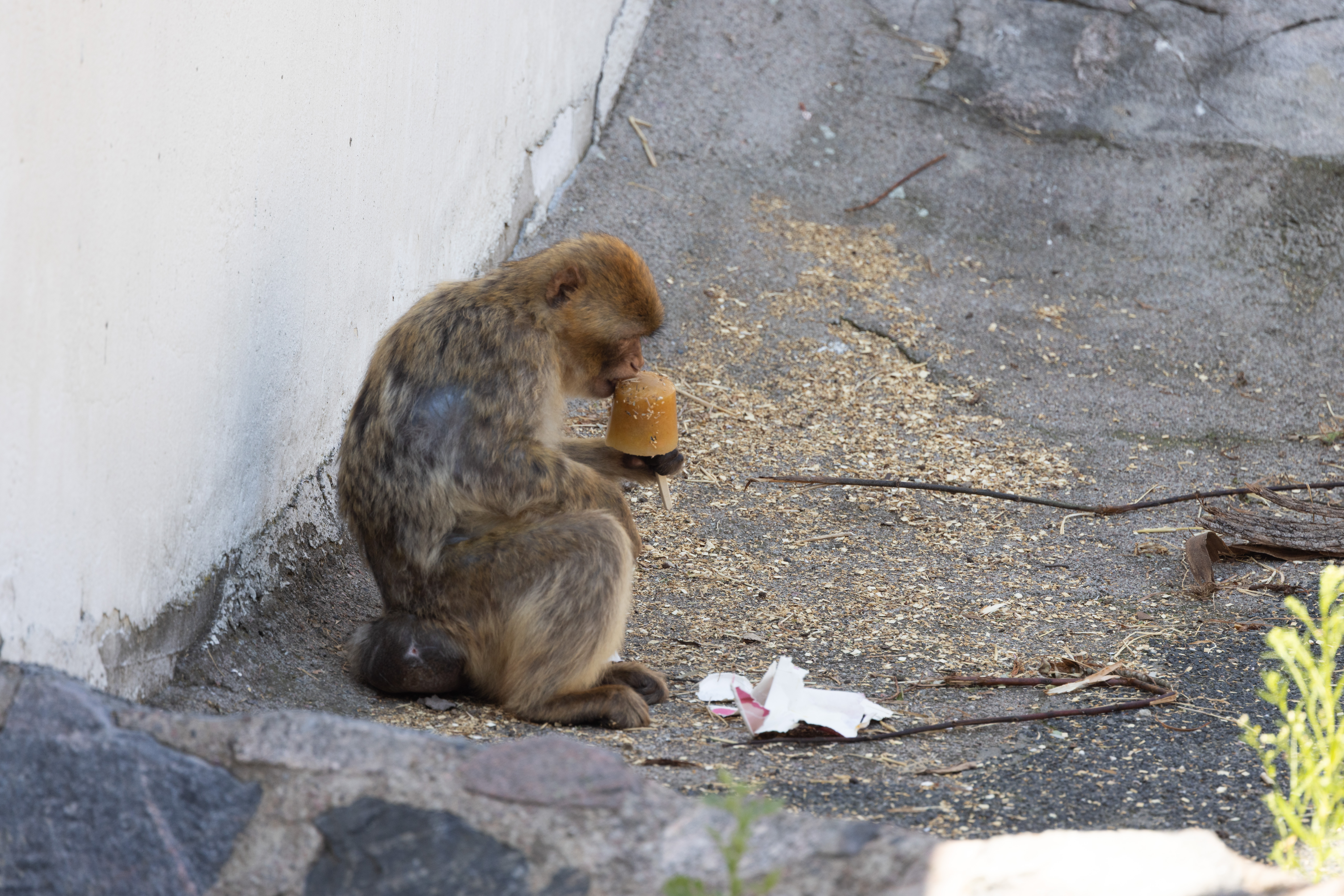 Berberiapinoiden helleherkut oli jäädytetty pahvimukien sisälle, ja "mehujäissä” oli mukana puutikku helpottamaan sen pitelemistä. Apinat kuljettivat herkkunsa varjoon nautittavaksi, joskin osalle pahvimukin repiminen tuntui olevan syömistä kiinnostavampaa.