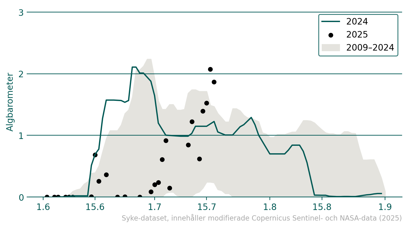Syke informerar om det allmänna nationella blågrönalgsläget på torsdagar varje vecka från 19.6. till 7.8.2024. De veckovisa översikterna över algläget inleddes år 1998.