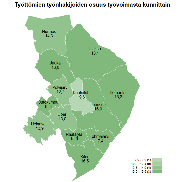 Pohjois-Karjalassa työttömänä 15,2 % työvoimasta