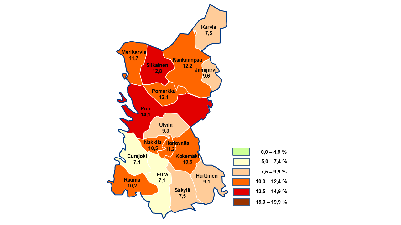 Työttömien työnhakijoiden määrä on noussut vuoden takaiseen verrattuna viidessätoista Satakunnan kuudestatoista kunnasta. Vain Karviassa työttömien määrä pysyi samana kuin vuosi sitten. Määrällisesti eniten työttömyys on vuoden aikana kasvanut Porissa, jossa lisäystä on ollut 641 henkeä. Suhteellisesti eniten työttömyys on noussut Jämijärvellä, 41 prosentilla.