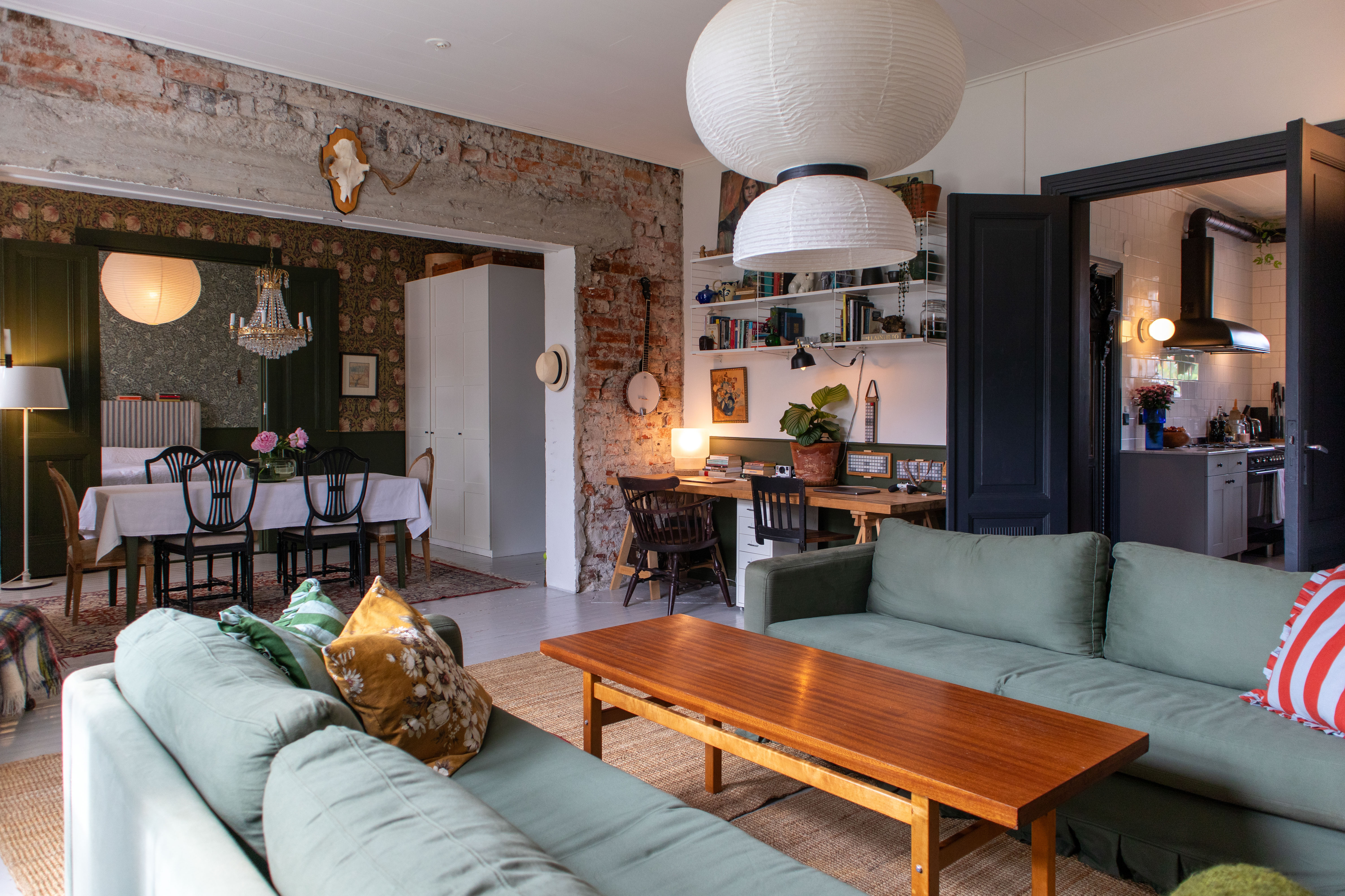 Tässä jaksossa tutustumme pienempiin kerrostalokoteihin, jotka valloittavat taiteella ja leikkisyydellään. Eri puolilla Helsinkiä sijaitsevat asunnot ovat värikkäitä ja boheemeja ja juuri asukkaidensa näköisiä. Ylös katsellessa voi kattopalkista myös bongata yllätyksen lähes sadan vuoden takaa!