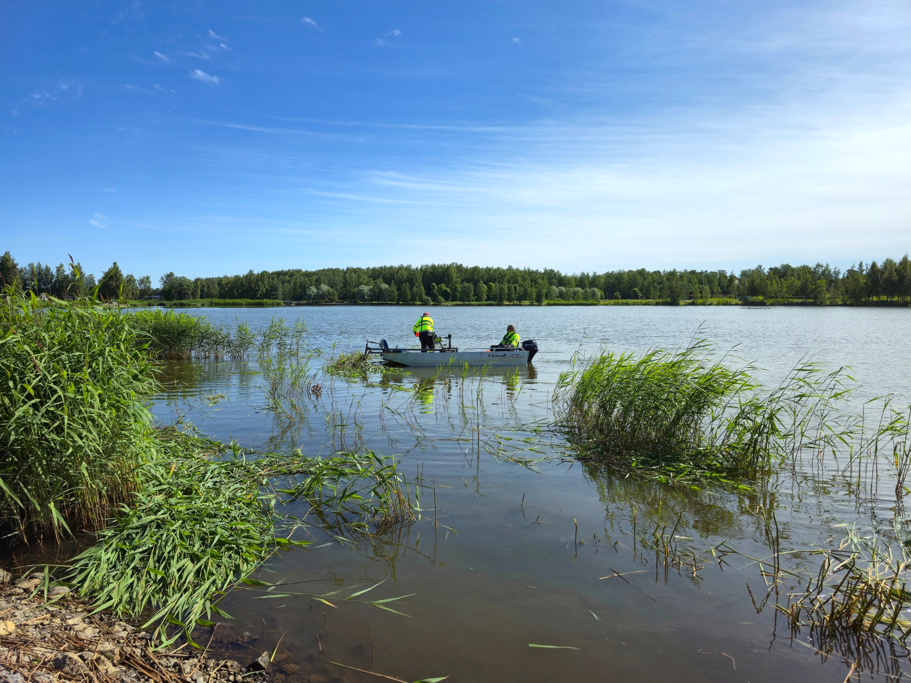 – Nykyinen tasapohjainen veneemme ei pääse matalassa vedessä lähelle rantaa, joten kaikkia hyviä niittopaikkoja ei tällä laitteistolla pystytä hoitamaan, Marttila kertoo. Hän mainitsee, että mukana on opinnäytetyön tekijä Jami-Matti Aho, joka tutkii vaihtoehtoja koneinvestointiin opinnäytetyössään.