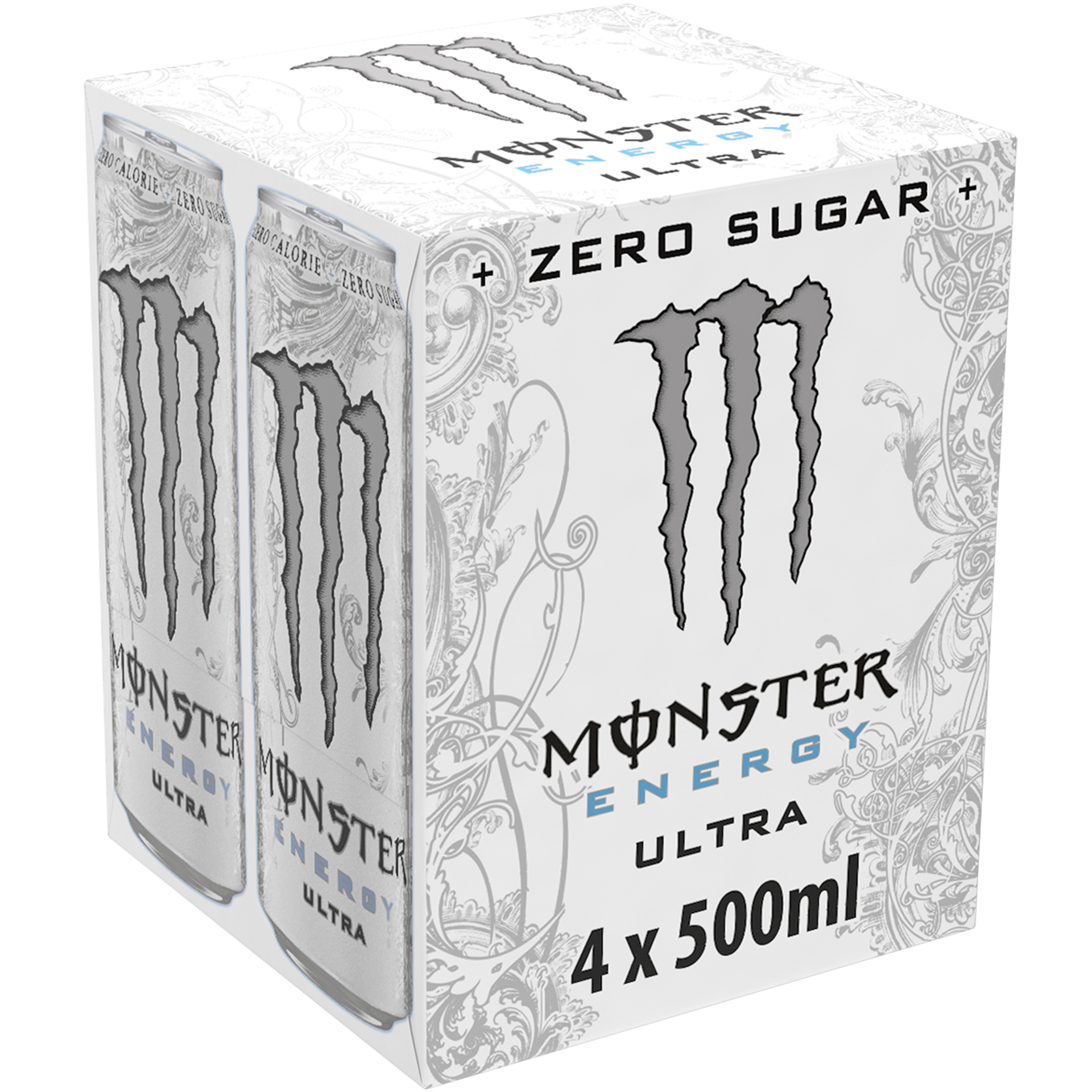 Monsterin suosituimmat maut ovat nyt saatavilla neljän puolen litran tölkin monipakkauksissa. Mukana on kaksi kestosuosikkia: alkuperäinen Monster Energy sekä myyntilistojen kärkinimi Monster Ultra White.