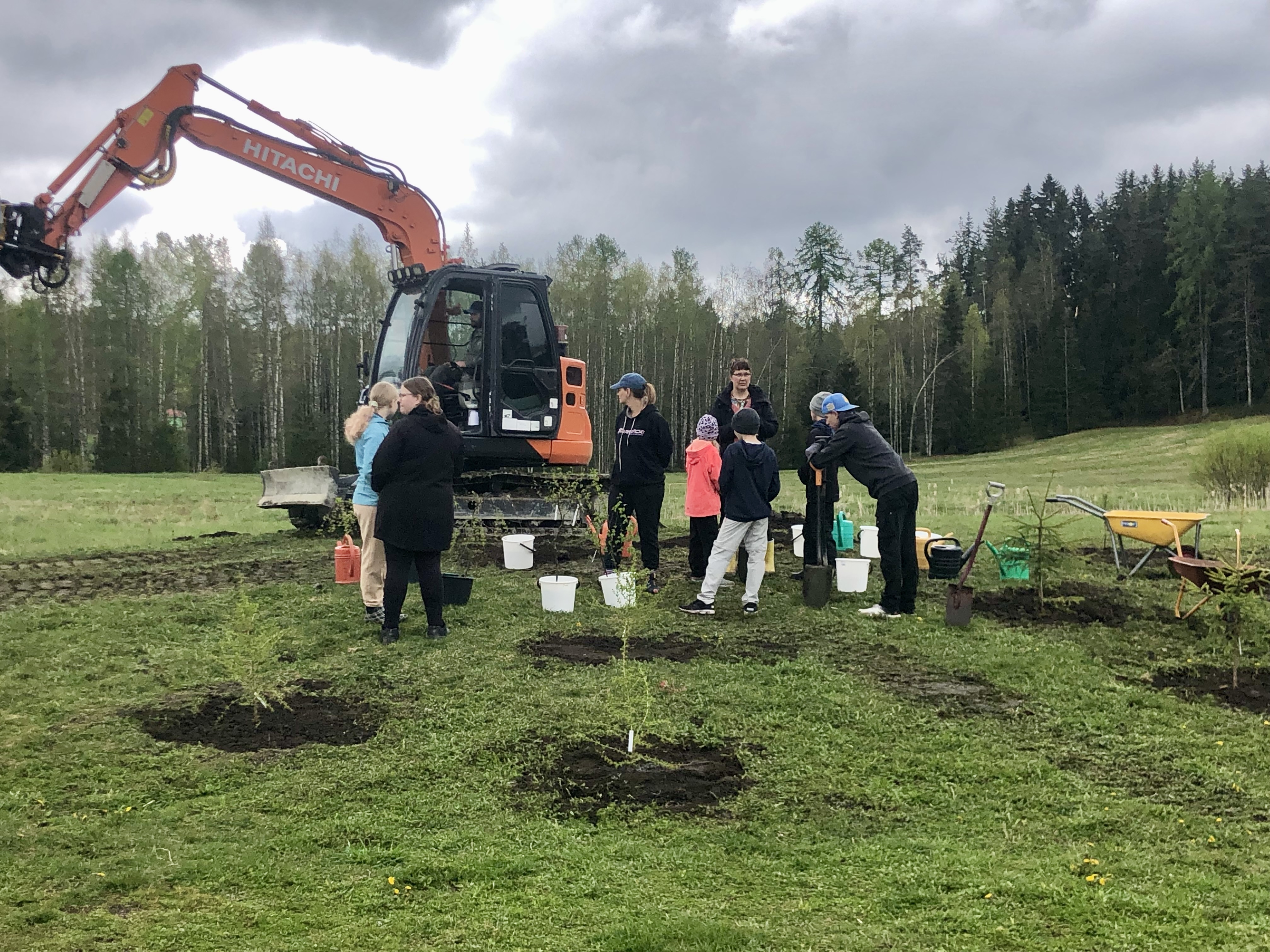 Över 60 plantor planterades under en dag på skolgården av Mika Waltarin koulu i maj. Samtidigt förverkligades byskolans långvariga önskan om en egen trädslagspark.