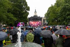 Hetkeä ennen konserttia yhtyeen osallistumista yhteiskunnalliseen keskusteluun Kaupungintalon pihalla seurasi sitäkin yleisössä ja aidan takaa monisatapäinen yleisö.