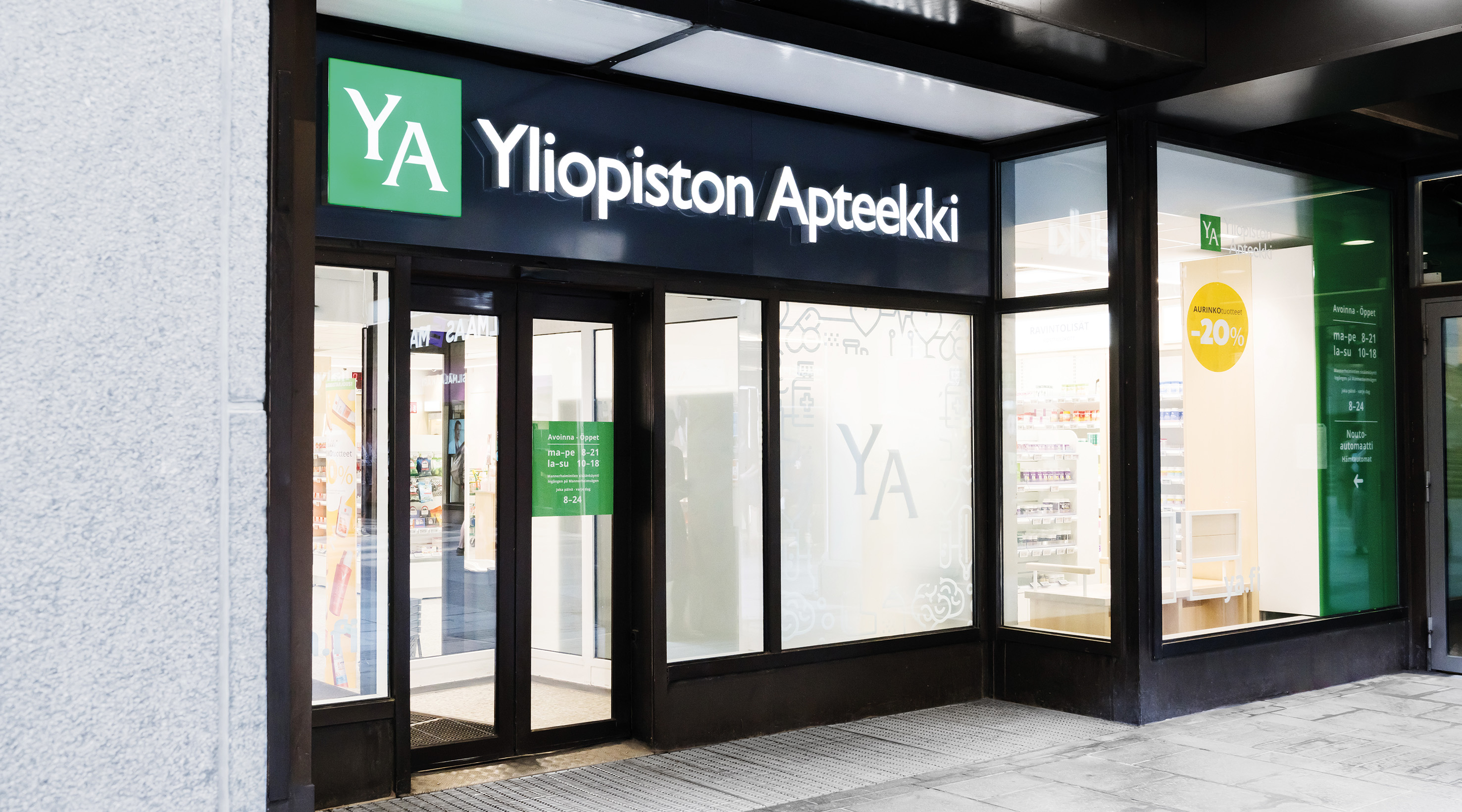 Yliopiston Apteekki on huolehtinut suomalaisten hyvinvoinnista jo yli kaksi ja puoli vuosisataa. Palvelemme asiakkaita apteekeissa ja verkkoapteekissa ya.fi kaikkialla Suomessa. Tarjoamme myös terveydenhuollon toimijoille laajan valikoiman palveluita aina lääkkeiden valmistuksesta annosjakeluun. Olemme Helsingin yliopiston omistama yritys, jonka tuotto käytetään koulutukseen ja tutkimukseen. Asioidessasi Yliopiston Apteekissa olet mukana huolehtimassa huomisen yhteiskunnasta kanssamme.