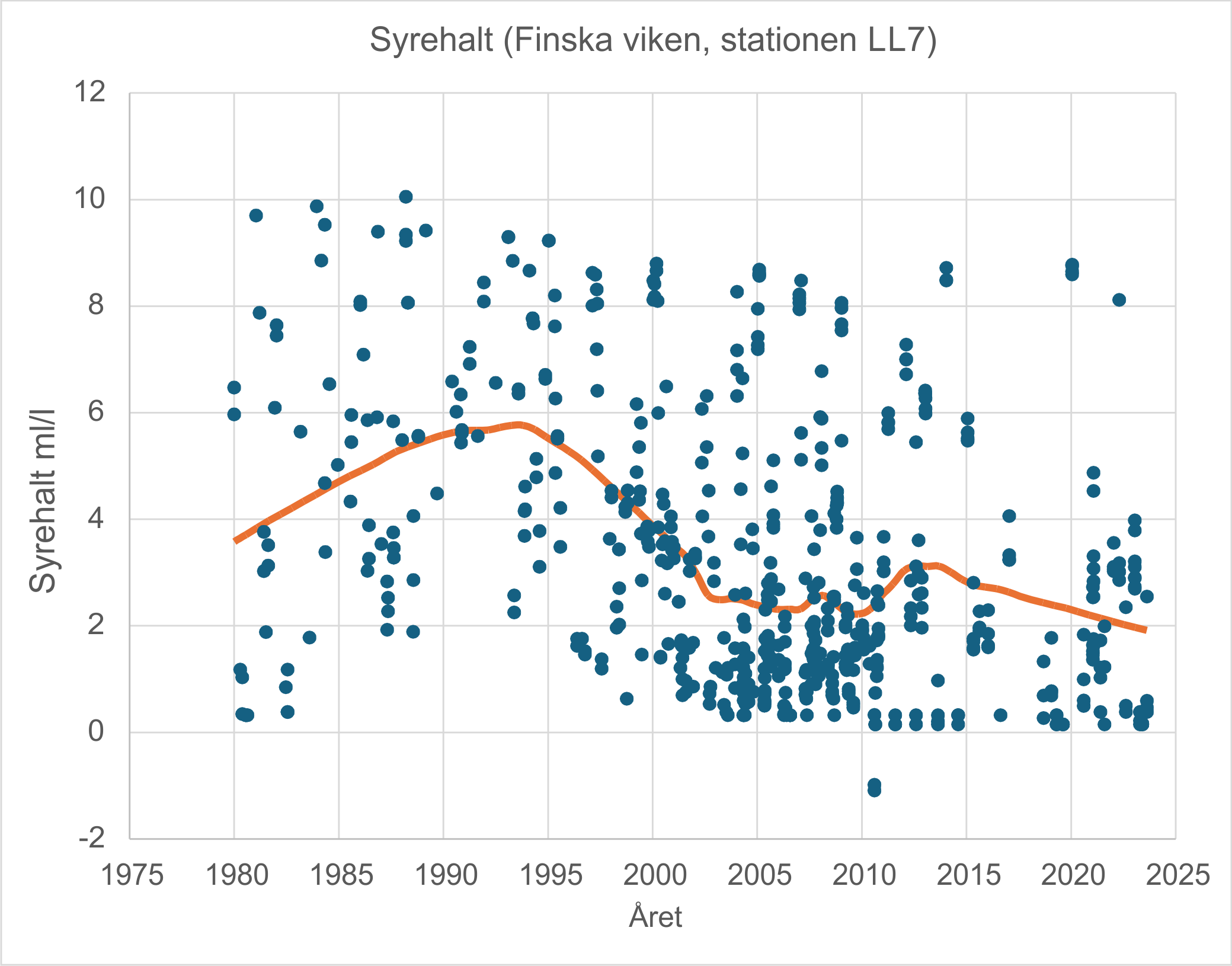 I januari var syrehalten i Finska viken god ända från ytan till bottnen. En sådan situation är exceptionell och under 2000-talet har den alltid varit ett resultat av långvariga västliga vindar vintertid. När detta inträffar sjunker salthaltens språngskikt djupare och utsprånget med syrefritt djupvatten från Östersjöns huvudbassäng drar sig västerut, bort från Finska viken. När vädertypen ändrar försämras syreläget i Finska viken ofta snabbt, och detta skedde också i år redan före Arandas resa under försommaren. Syreläget i de djupa områdena i Finska viken var fortsatt dåligt i augusti.