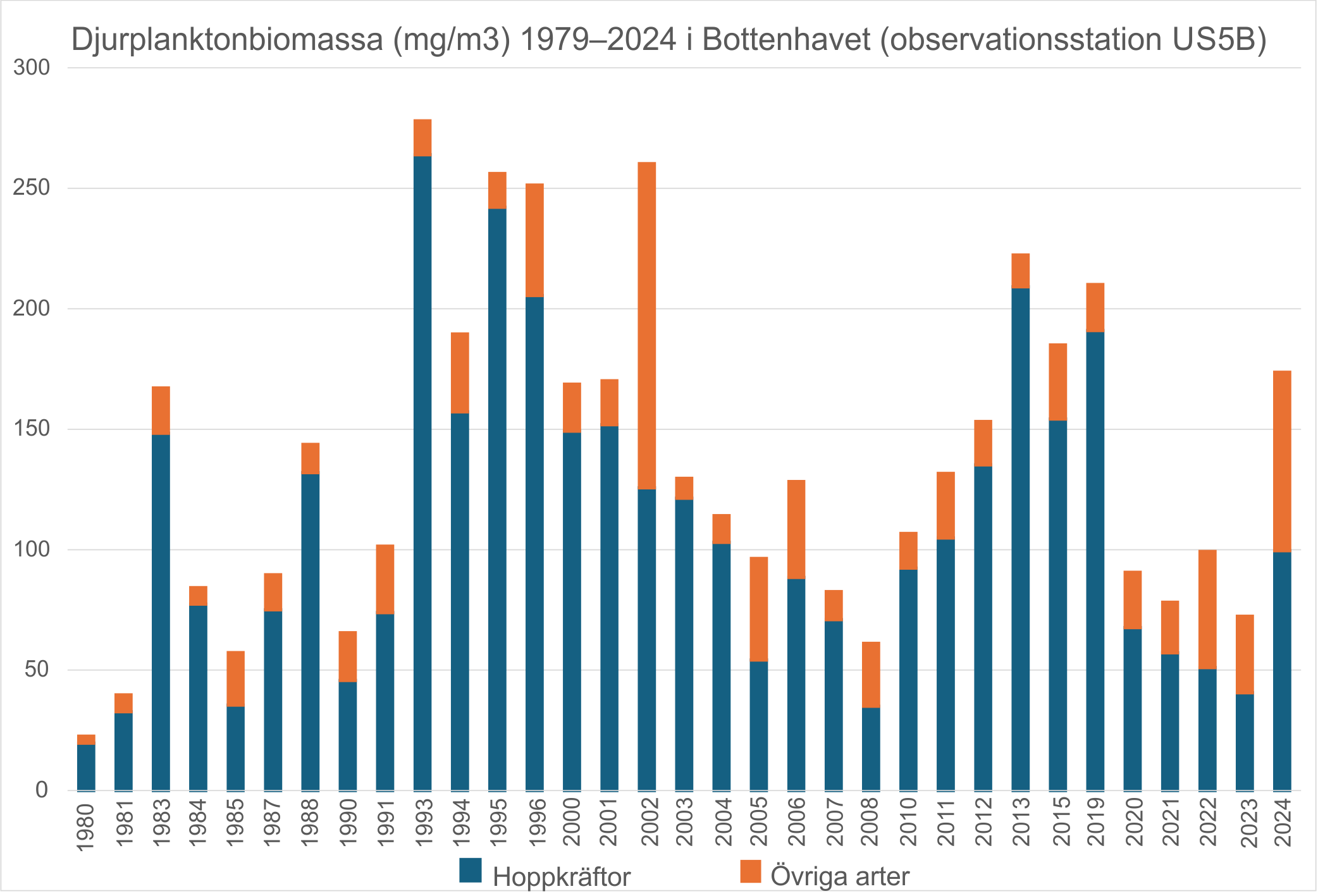 Också i Bottenhavet har djurplanktonbiomassan varierat, men där har ingen alarmerande reducering av den sammanlagda biomassan noterats. Under de senaste åren har den största förändringen i Bottenhavet varit att små djurplankton, såsom hjuldjur och vattenloppor, har ökat. Om mängden små plankton fortsätter att öka, försämras näringsutbudet för planktonätande fiskar, såsom strömming och vassbuk.