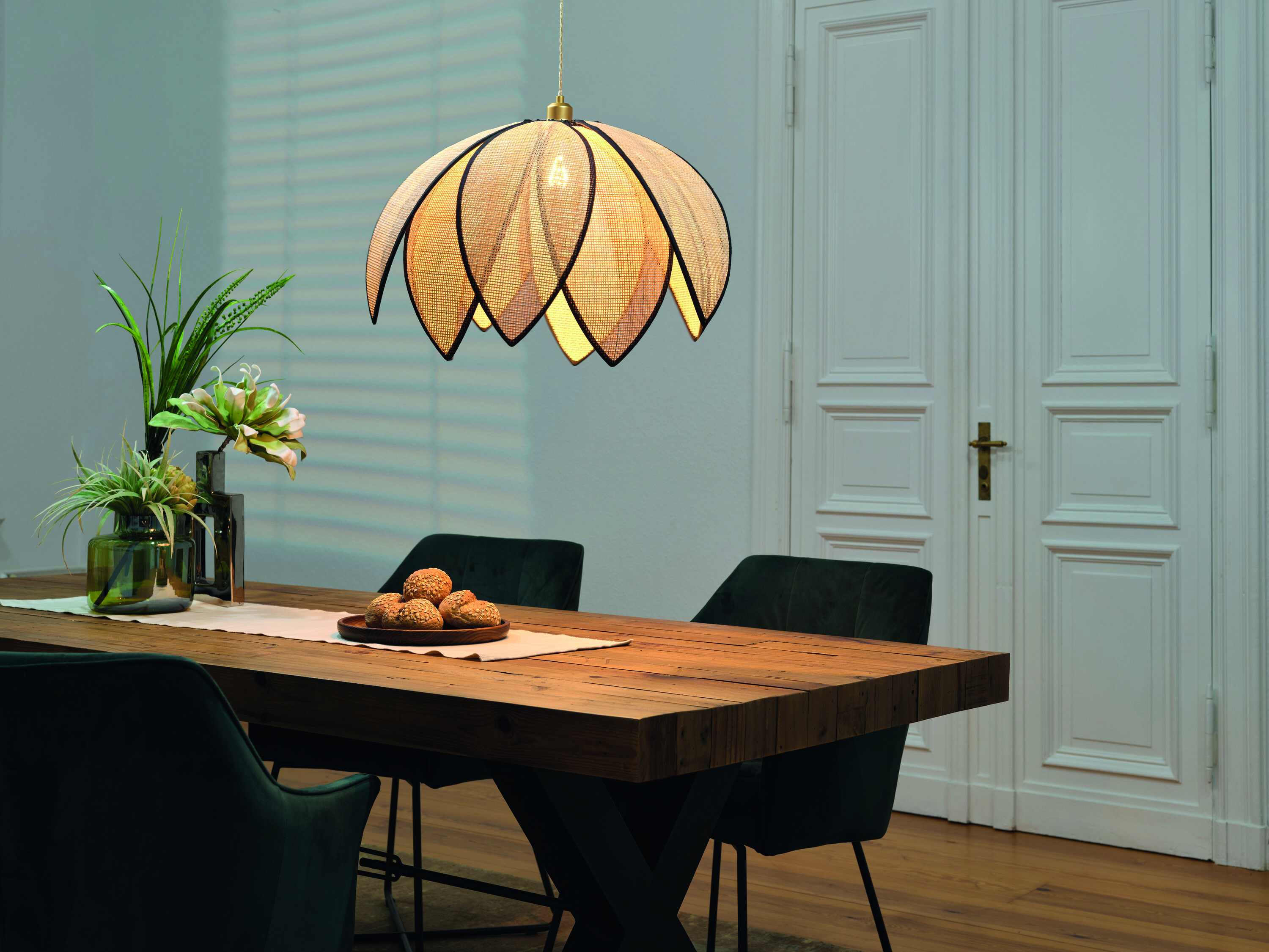 Uudella, terälehdistä inspiroituneella muotoilulla viimeistellyt Decor Rattan Lotus -valaisimet luovat kotiin pehmeää valoa, joka loistaa kauniisti rottingin läpi. Luonnonmateriaalina rottinki on ajaton valinta ja sopii sisustuksessa moneen. Sarjaan kuuluu kaksi erikokoista riippuvalaisinta sekä seinävalaisin, joilla on helppoa luoda kaunis kokonaisuus esimerkiksi makuuhuoneeseen.