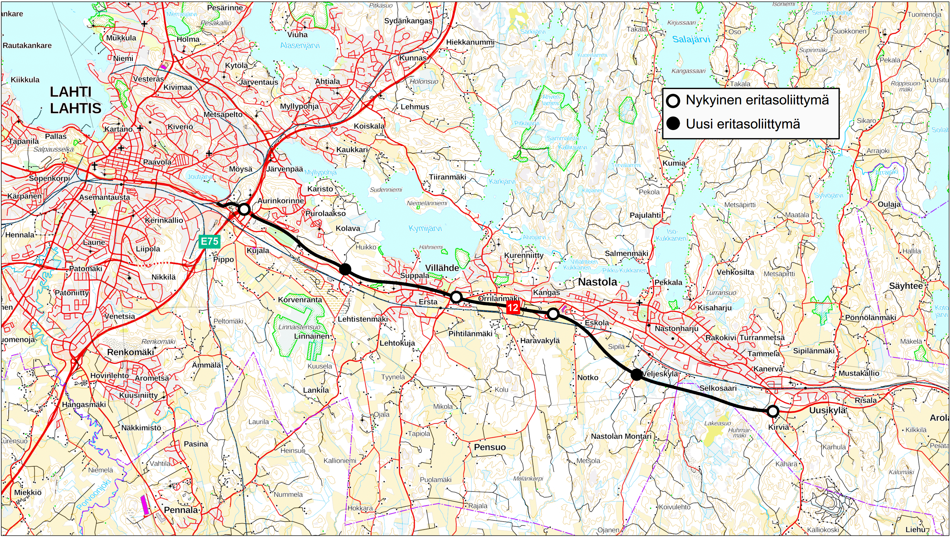 Tiesuunnitelmassa liikenneturvallisuutta parannetaan. Sen mukaan valtatie levennetään Joutjärven ja Nastolan eritasoliittymien välillä nelikaistaiseksi. Nastolan ja Uudenkylän välillä tie muutetaan keskikaiteelliseksi ohituskaistatieksi. Lisäksi rakennetaan kaksi uutta eritasoliittymää, jotka tukevat Lahden kaupungin nykyistä ja tulevaa maankäyttöä.