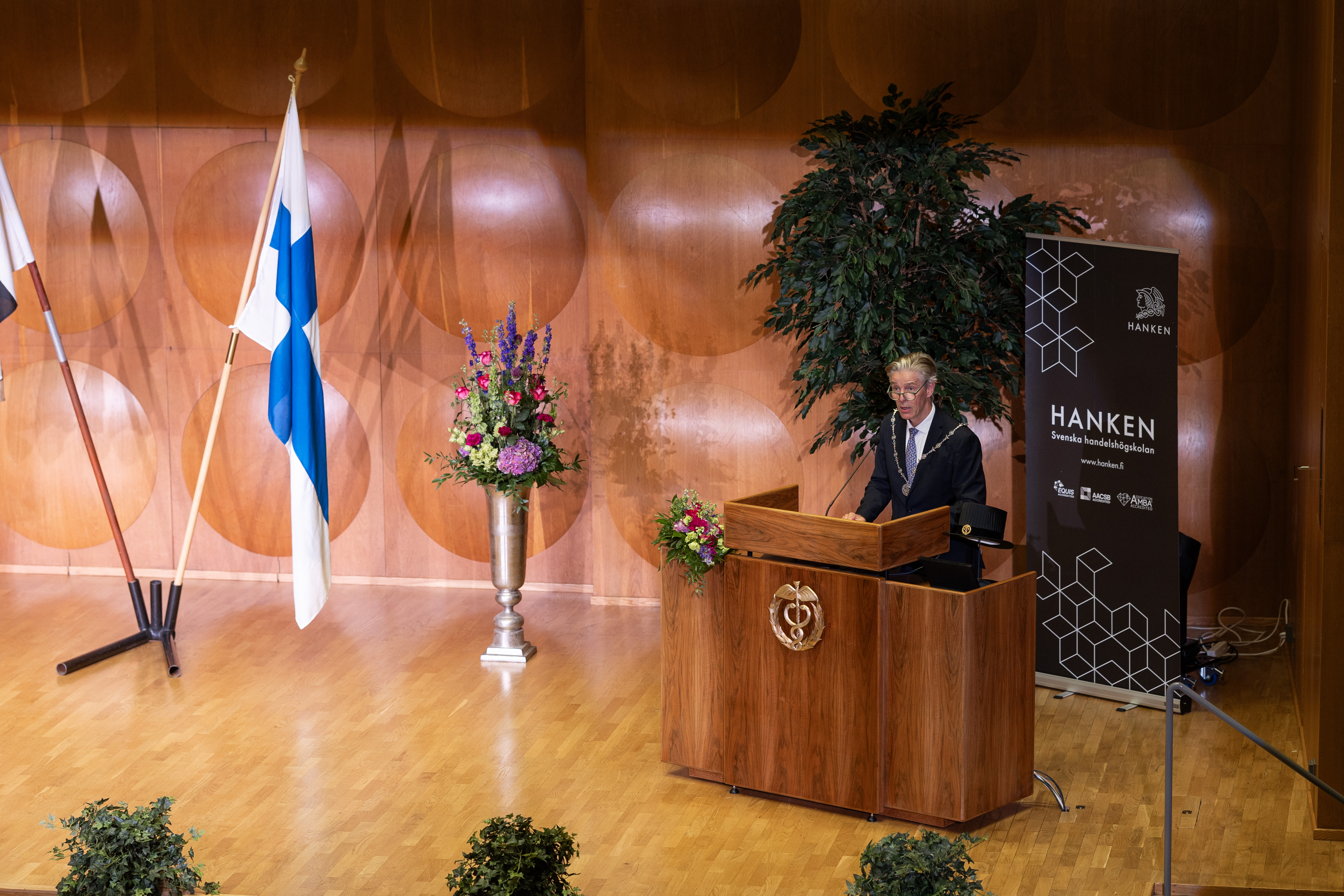 – Finland står inför en rad olika utmaningar, inklusive landets ekonomiska situation. Även om det är klart att det finns ett behov av att hitta sparobjekt så är det lika viktigt att göra nödvändiga investeringar för framtiden. Att höja landets utbildningsnivå hör helt klart till dessa, sade rektor Ingmar Björkman på Hankens inskription 1 september 2025.