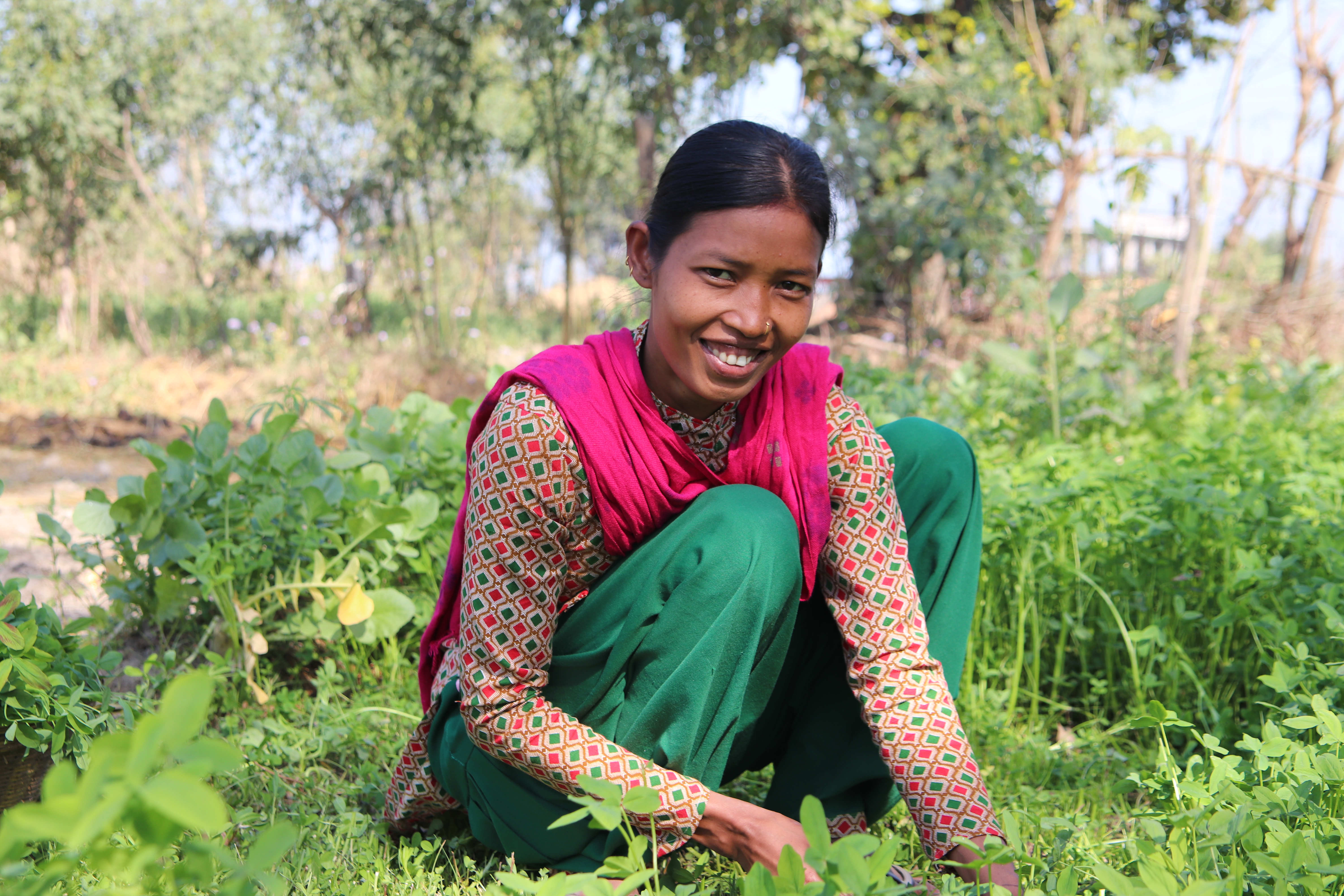 Yksinhuoltaja Shova Chaudhary pienviljelee Ulkoministeriön tukemassa Lähetysseuran hankkeessa Nepalissa. Vuonna 2024 yli 16 500 pienviljelijää sai tukea kestävään maatalouteen ja tuotteiden myymiseen Lähetysseuran hankkeissa. Mimosa Hedberg