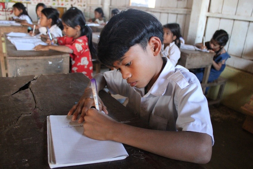Ratanak,10, kuuluu kavet-alkuperäiskansaan ja asuu Koillis-Kambodžan syrjäseudulla. Hän saa nykyään koulussaan monikielistä opetusta sekä äidinkielellään että khmeriksi. Monikielisen opetuksen myötä sekä kouluun osallistuminen että oppimistulokset ovat kohentuneet merkittävästi. Samalla myös perheiden tuki koulunkäynnille on lisääntynyt, ja koulusta on tullut koko yhteisöä tukeva paikka. Yksi vuosien 2022-2025 kolmesta painopisteestä Lähetysseuran kehitysyhteistyössä on syrjittyihin ryhmiin, kuten kielivähemmistöihin, kuuluvien lasten ja nuorten pääsy laadukkaaseen koulutukseen.