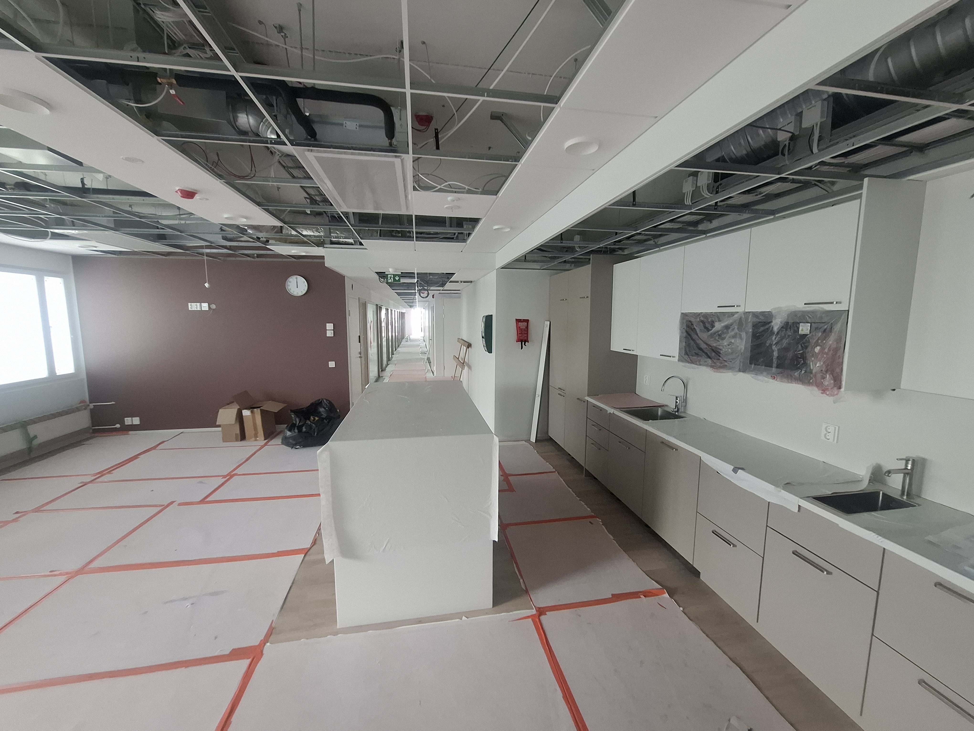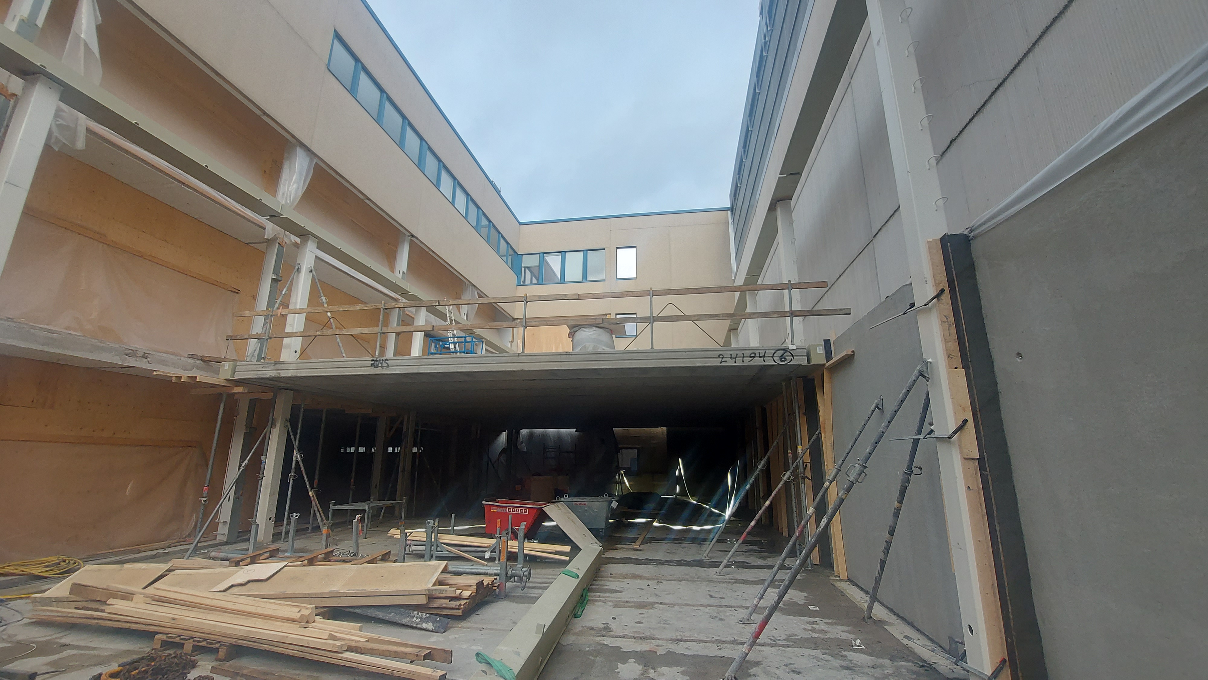 Työmaa etenee suunnitellusti aikataulussa, ja harjannostajaiset juhlistavat toisen laajennusosan rungon valmistumista. Rakennustyöt alkoivat huhtikuussa 2024, ja nyt työmaalla on käynnissä pääosin sisävalmistusvaihe. Ylimmät kerrokset alkavat olla viimeistelyä vaille valmiit, ja ensimmäisen kerroksen saleja kalustetaan jo vauhdilla. Samalla jatkuvat laajennusosien väliseinä- ja julkisivutyöt, pihatyöt sekä talotekniset asennukset. Uudistetut ja laajennetut tilat valmistuvat keväällä 2026.