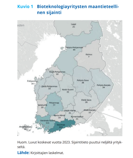 Liitteet: Kuvio 1: Bioteknologiayritysten maantieteellinen sijainti vuonna 2023