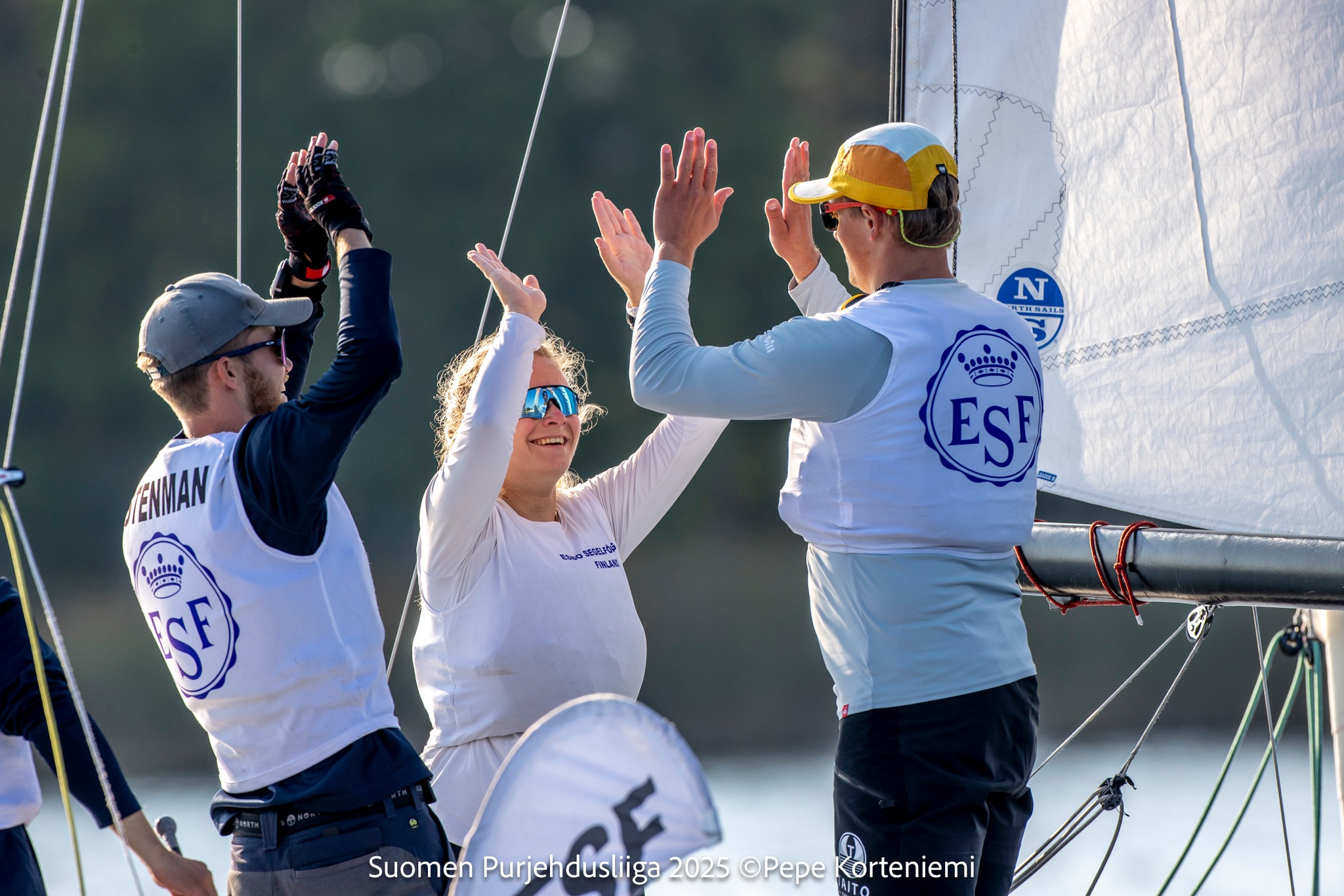 ESF purjehti toistamiseen Purjehdusliigan voittoon kippari Lucas Karlemon johdolla. Finaaliin yltäneet joukkueet kamppailivat kevyissä ja vaihtelevissa olosuhteissa. Ratkaisu siirtyi lopulta sunnuntain viimeisiin lähtöihin, joissa ESF onnistui kääntämään kilpailun edukseen.