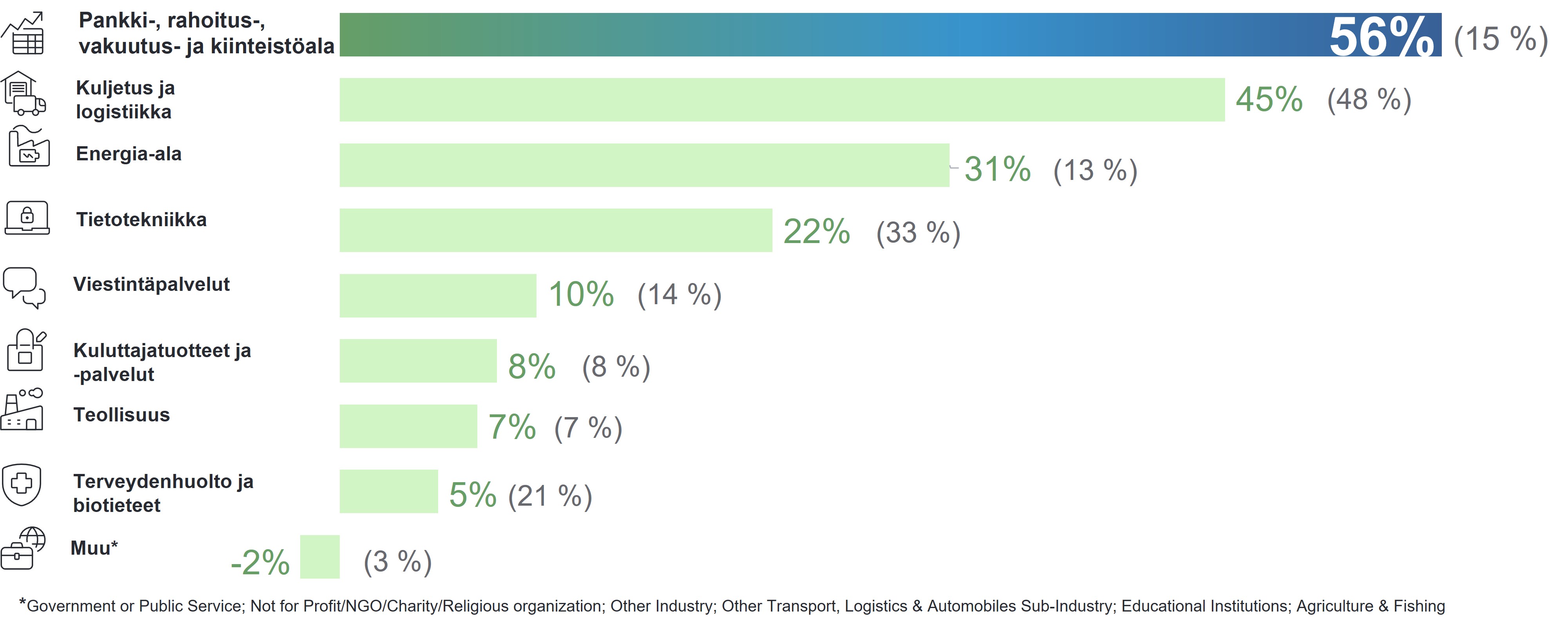 - Pankki-, rahoitus-, vakuutus- ja kiinteistöala +56 (+15)