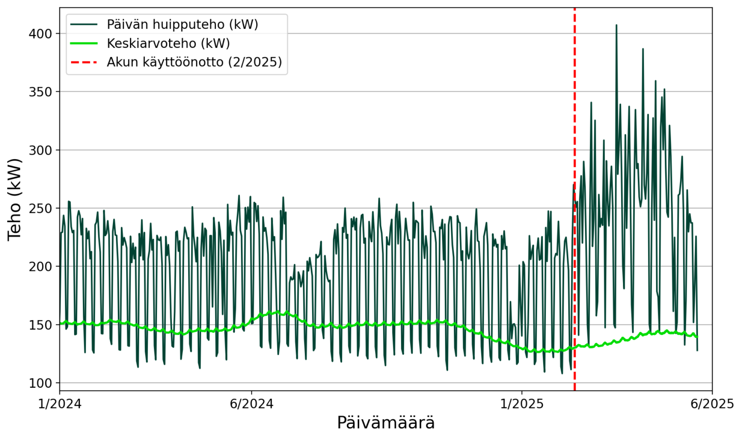 Kuormansiirtotilassa akkua ladataan, kun spot-hinta on alhainen, ja vastaavasti puretaan verkkoon, kun spot-hinta on korkea. Caruna on seurannut tarkasti järjestelmien toimintaa sekä vaikutuksia sähköverkon ja -liittymän kapasiteetin käyttöön.