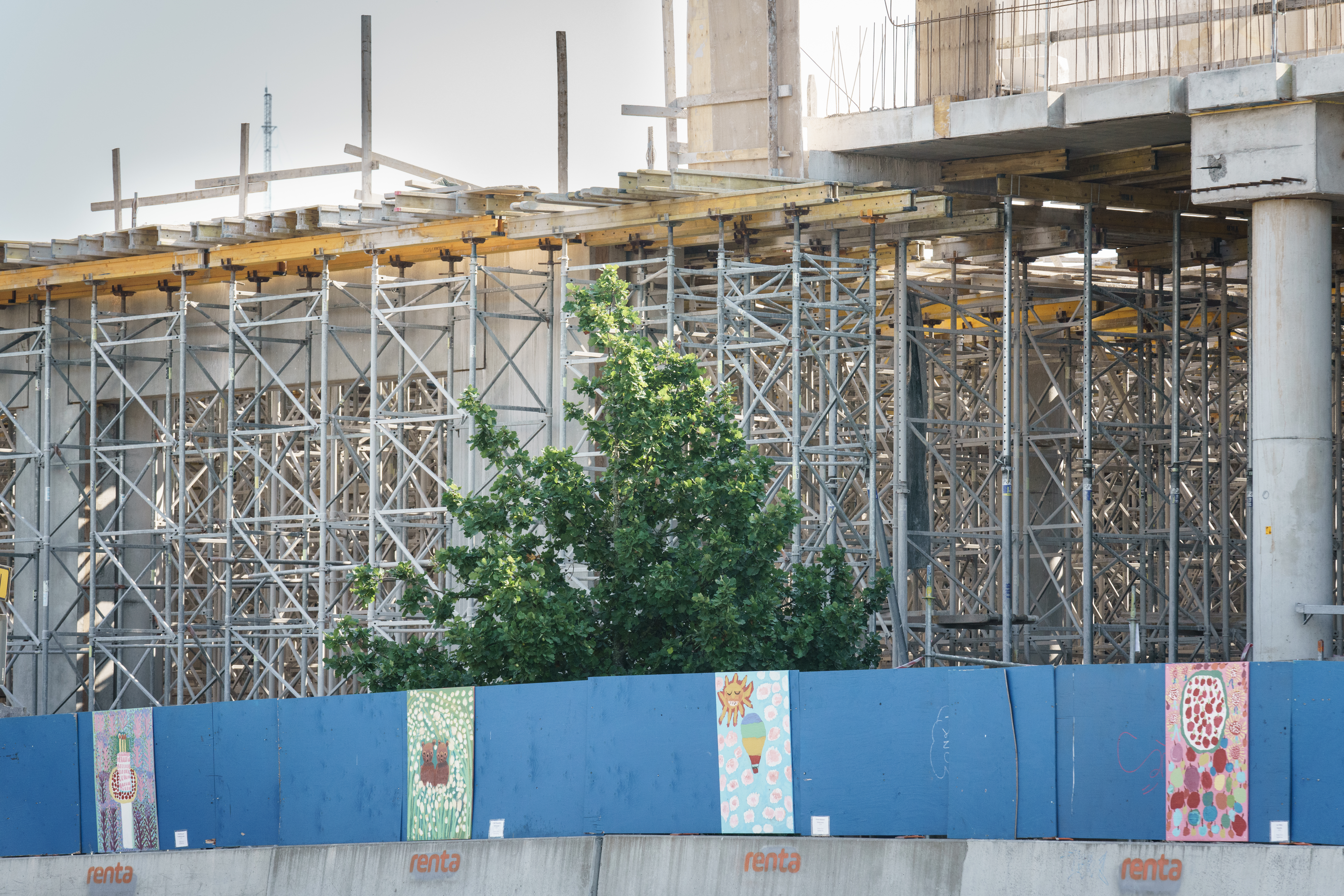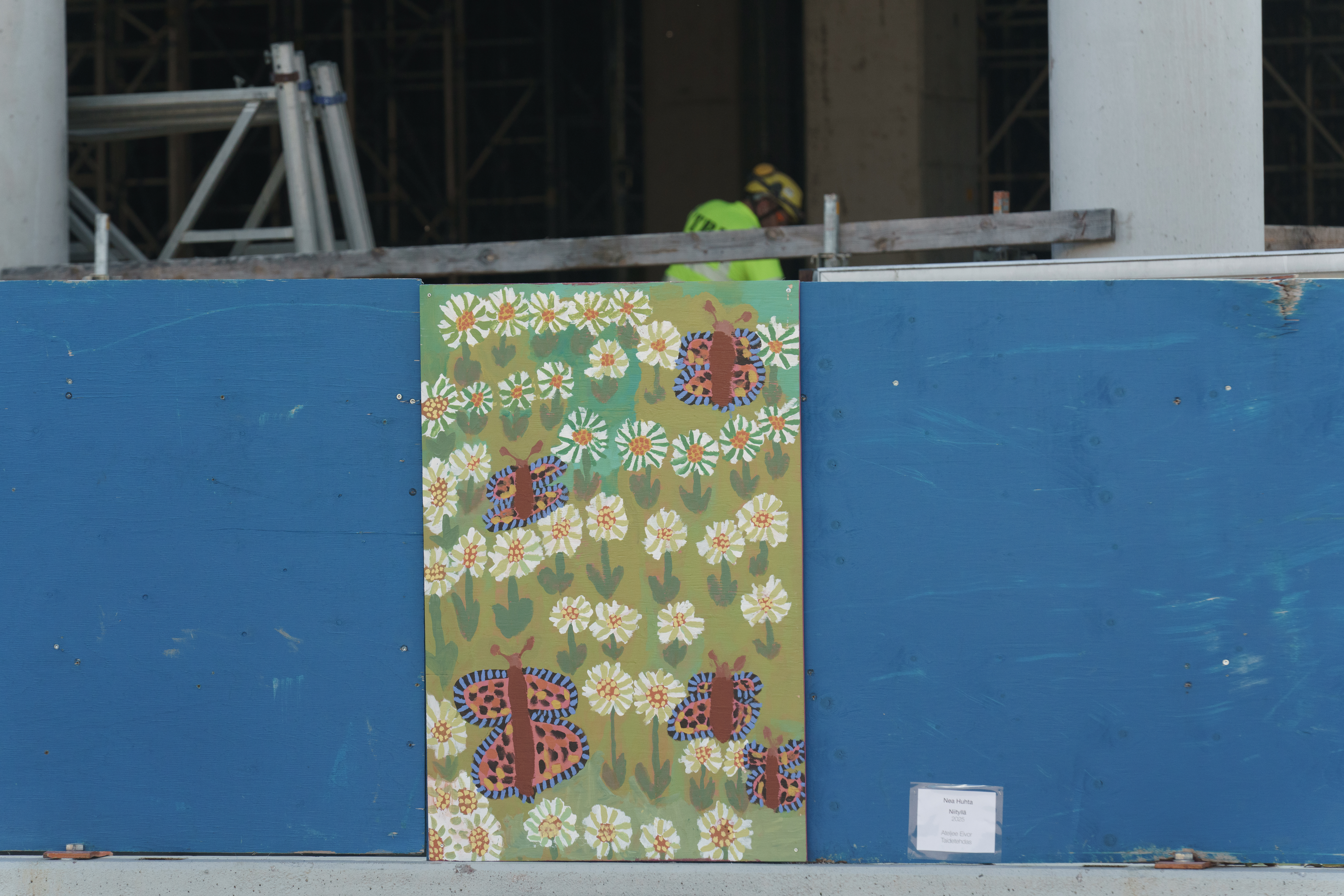Jatkeen rakentaman Taidetehtaan K-citymarketin työmaa-aitaan kiinnitettiin maanantaina Ateljee Eivorissa tehtyjä maalauksia. Aitamaalaukset tuovat iloa niin työmaan arkeen kuin ohikulkijoiden päiviin.