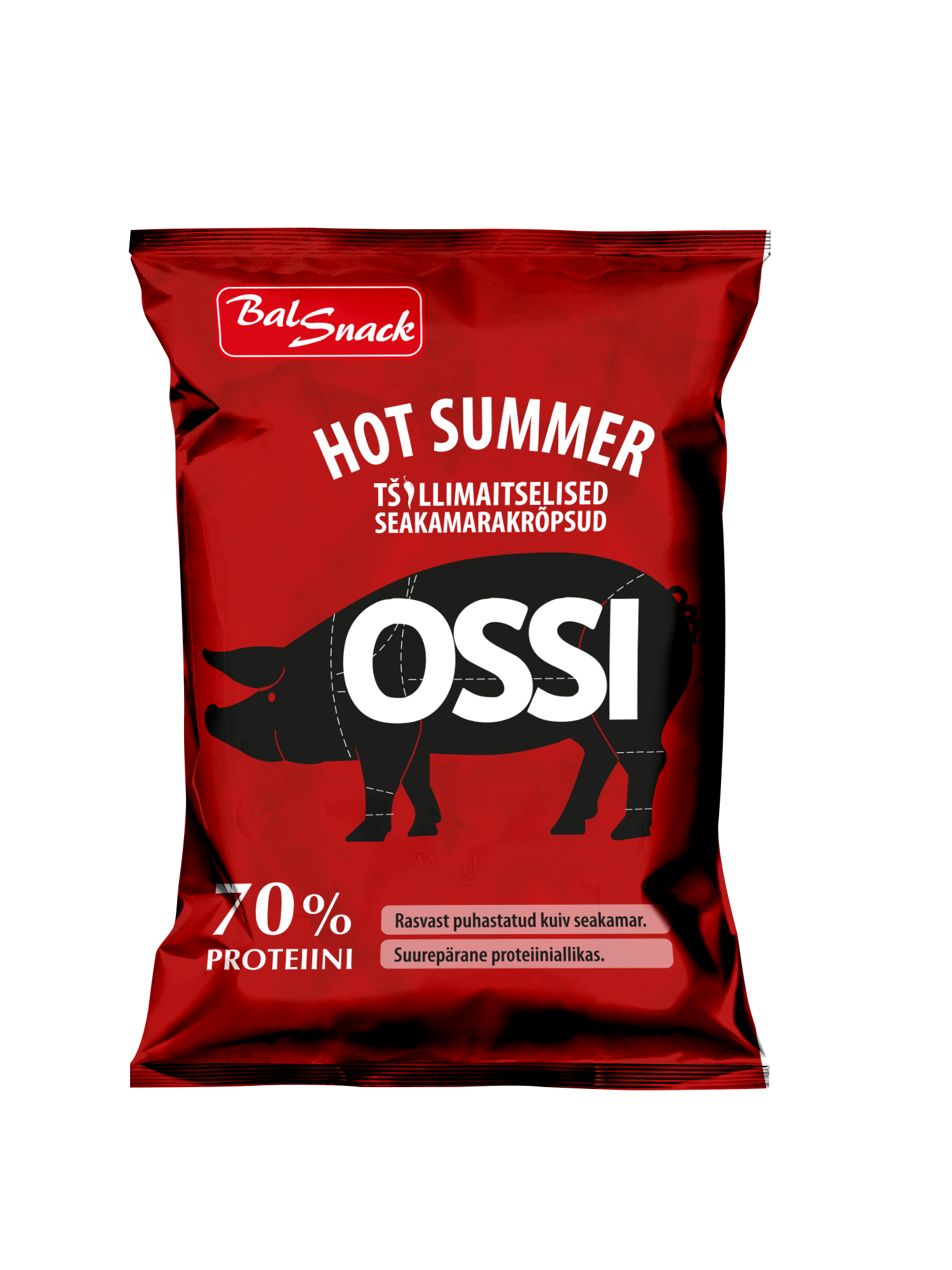 Virossa valmistetut OSSI-tuoteperheen possusnacksit ovat edullinen proteiiniherkku lähes hiilihydraatitta.