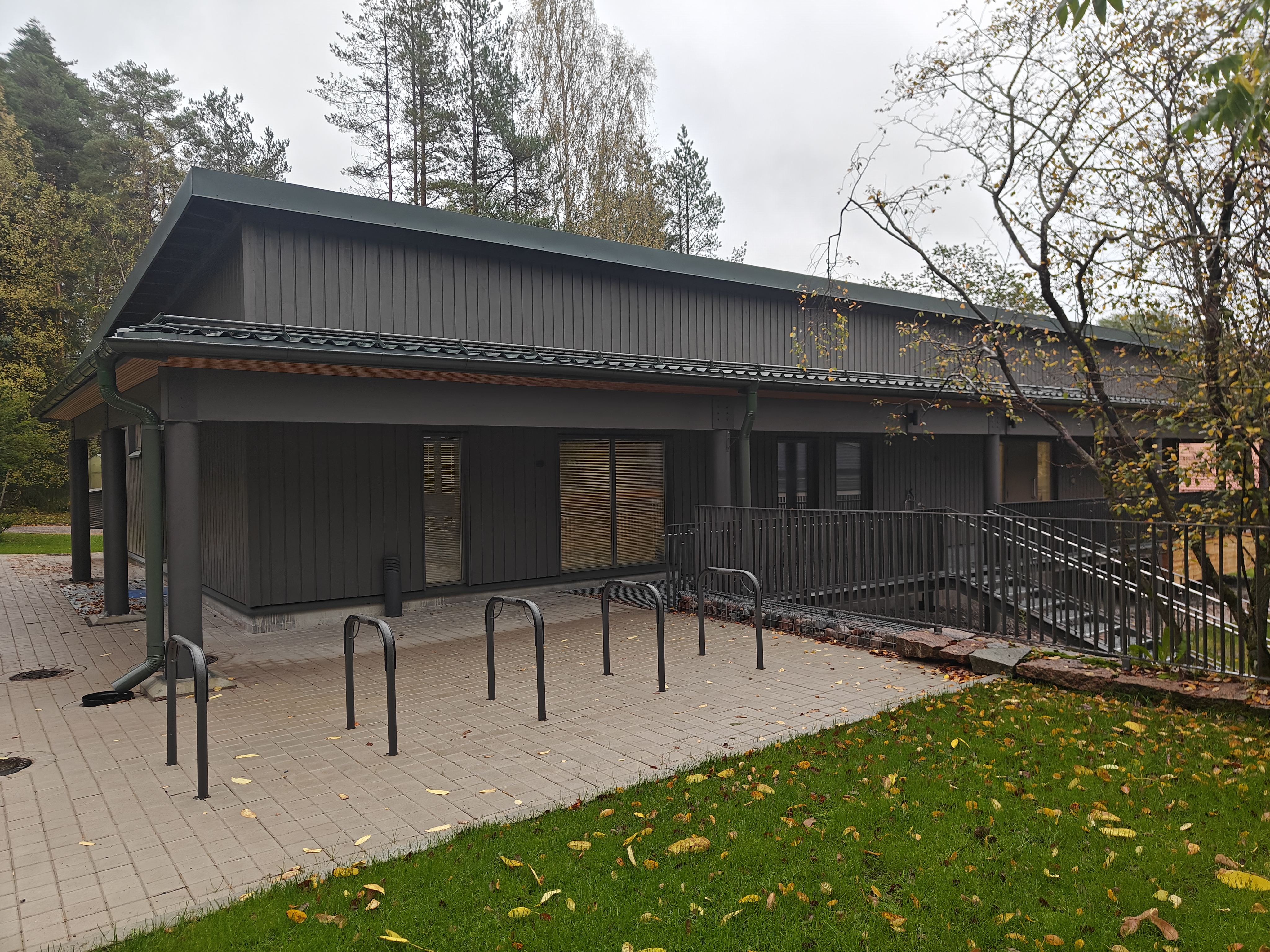 Peruskorjauksen lisäksi tontille toteutettiin uudisrakennus käyttäjien toiminnallisten tarpeiden mukaisesti. Rakennukseen sijoittuvat henkilöstön sosiaalitilat, toimistotilat sekä asiakkaiden wc-tila. Rakennus toteutettiin esteettömäksi.