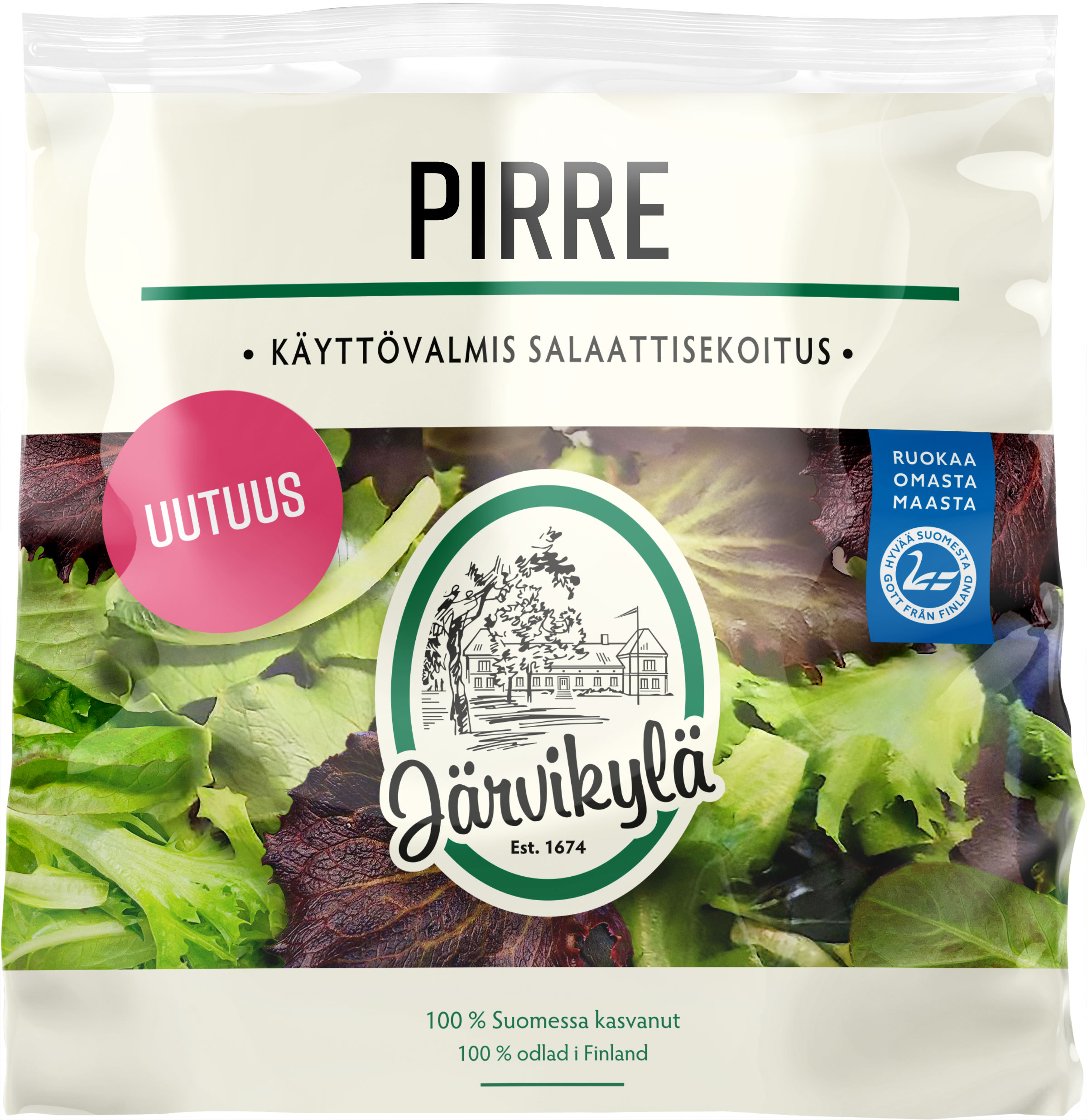 Järvikylän käyttövalmiissa salaattisekoituksissa on pieninä ja mehevinä leikattuja kokonaisia salaatinlehtiä. Pirre ja muut salaattiperheen tuotteet tarjoavat helpon tavan lisätä salaattia ja makua jokaiselle aterialle. Yhdestä salaattipussista riittää yhteen annossalaattiin tai lisukkeeksi neljälle ruokailijalle.