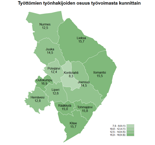 Pohjois-Karjalassa työttömänä 13,8 % työvoimasta