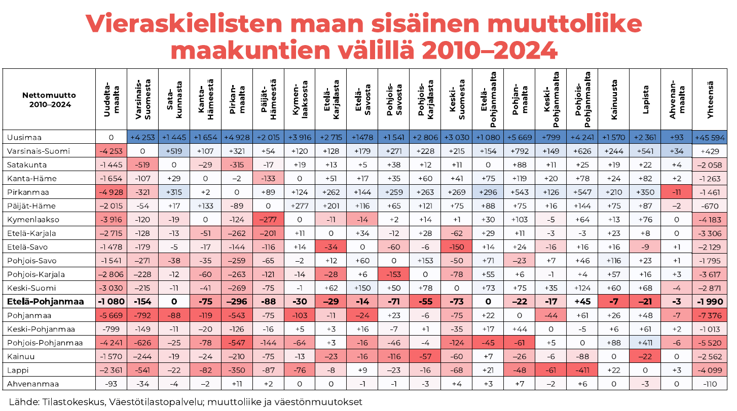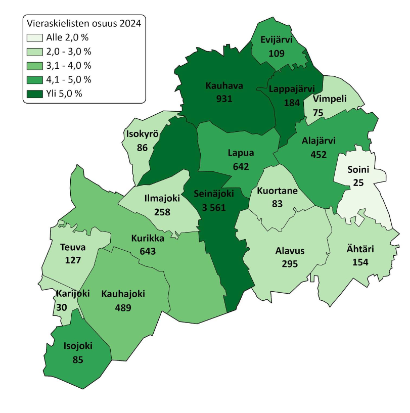 Vieraskielinen väestö lähes kaksinkertaistui Etelä-Pohjanmaalla vuosina 2018–2024