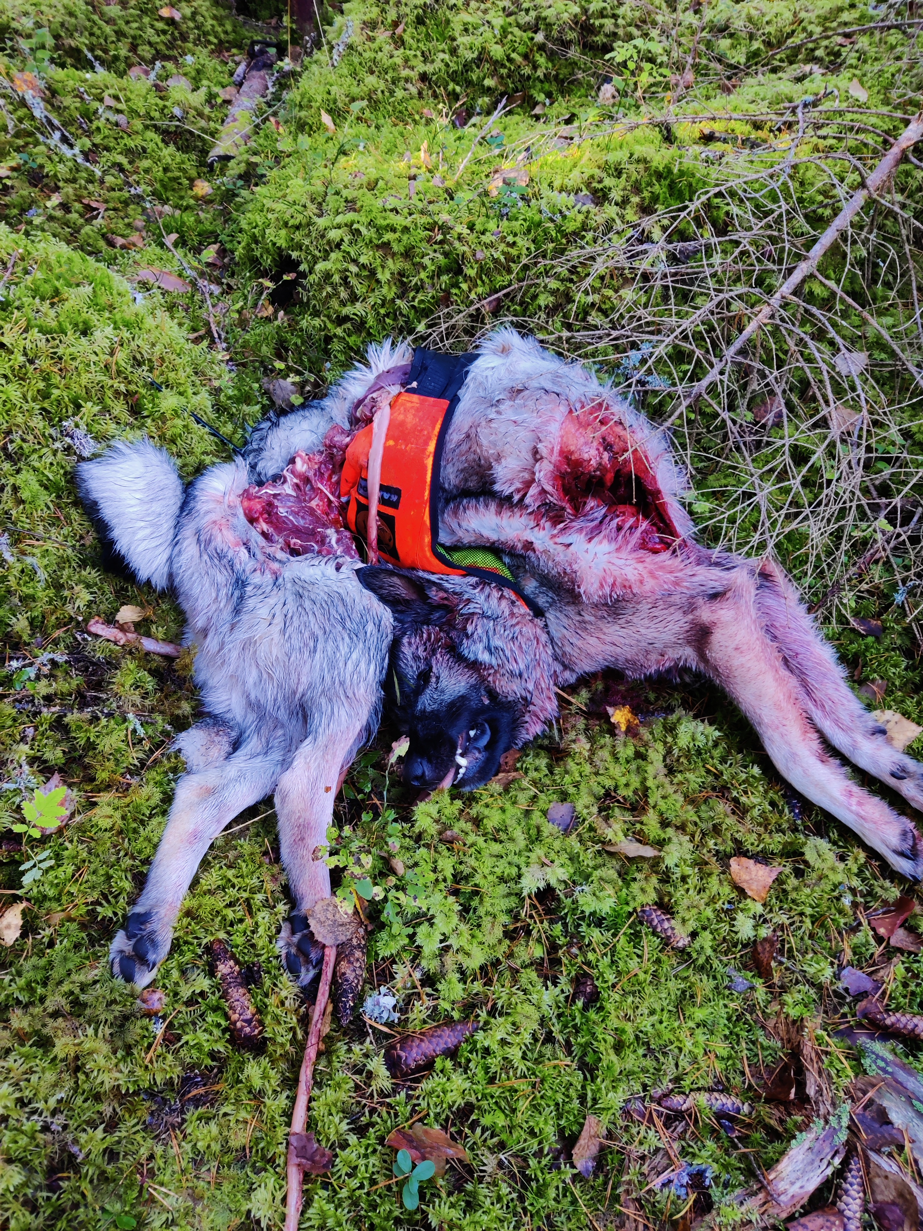 Susi repi harmaata norjanhirvikoiraa kesken treenin Joensuun Kiihtelysvaarassa 31. lokakuuta. Koira jouduttiin viemään eläinlääkäriin paikattavaksi ja toipuu nyt kotona.