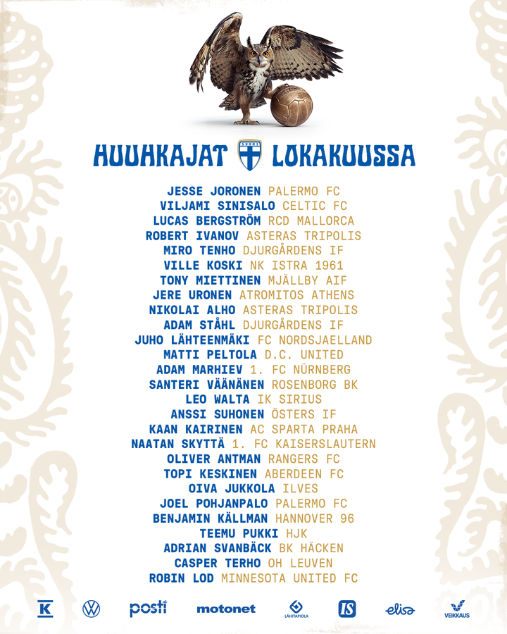 Huuhkajien ja Pikkuhuuhkajien joukkueet lokakuun otteluihin julkaistaan keskiviikkona 1.10.25.9.2025 15:30:00 EEST | Tiedote