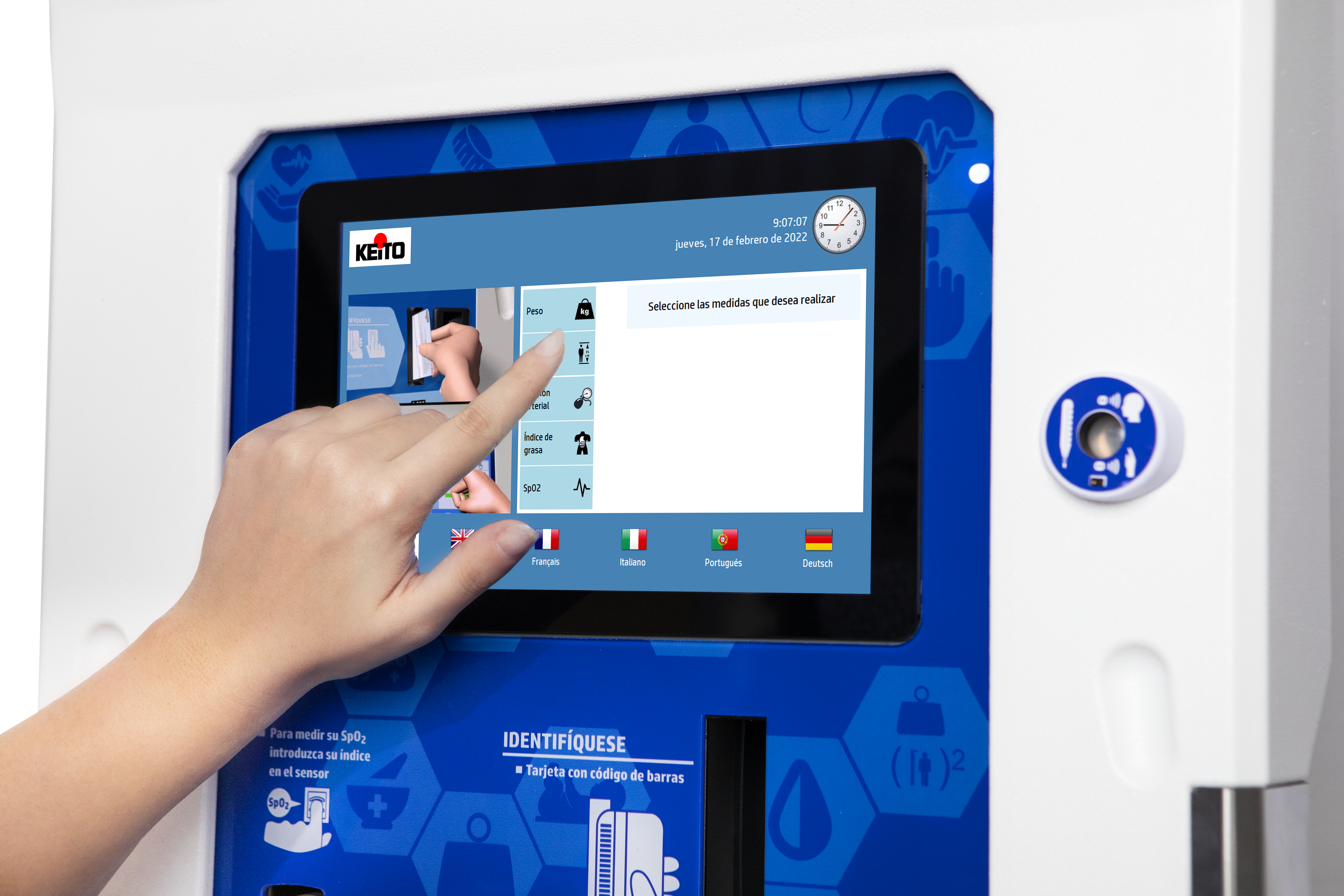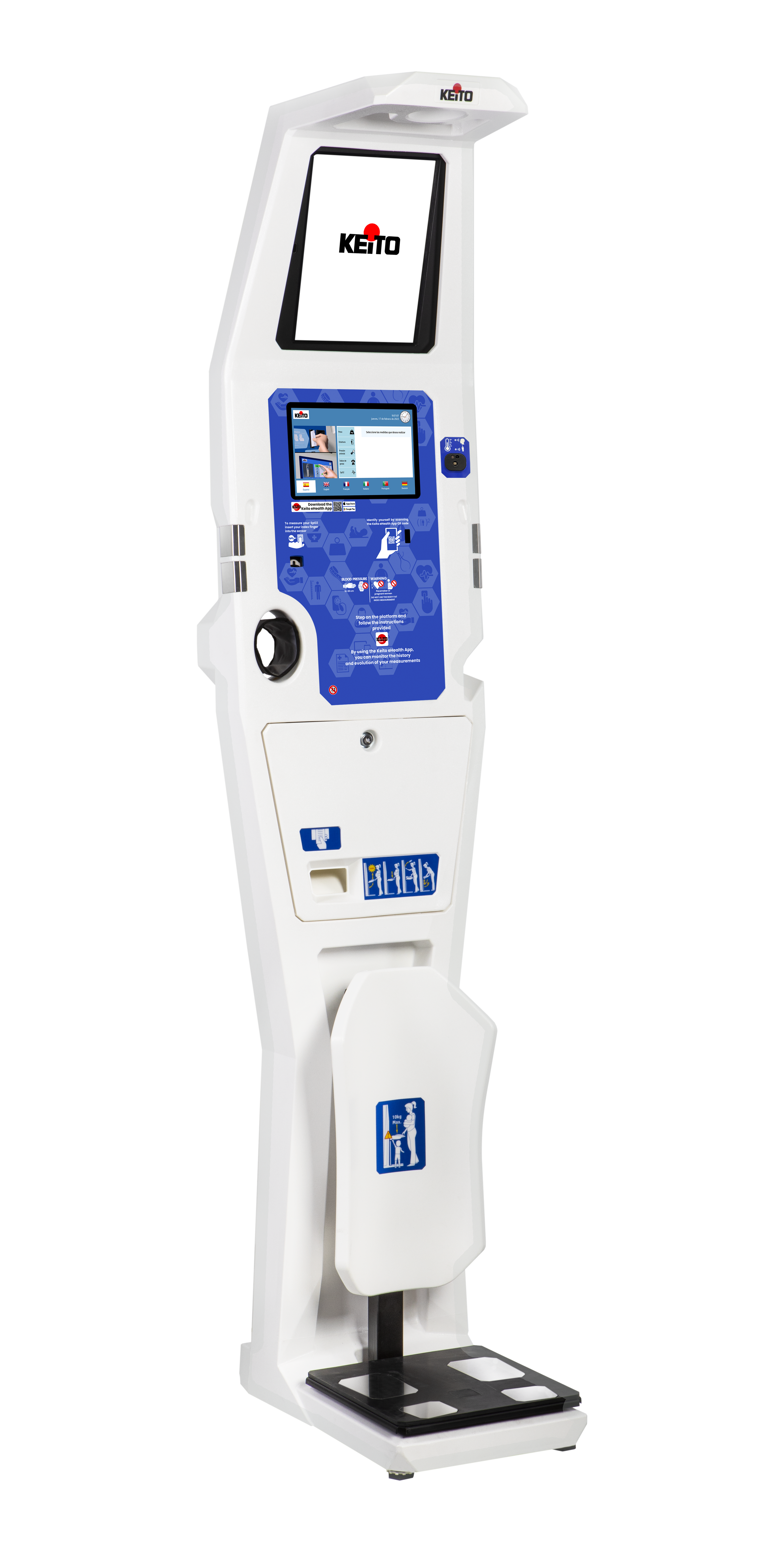 KEITO K10 lääkinnällinen laite mahdollistaa erilaisia terveysmittauksia – kuten verenpaineen, painon, pituuden, kehonkoostumuksen, sykkeen ja happisaturaation – vain kolmessa minuutissa ilman ajanvarausta.