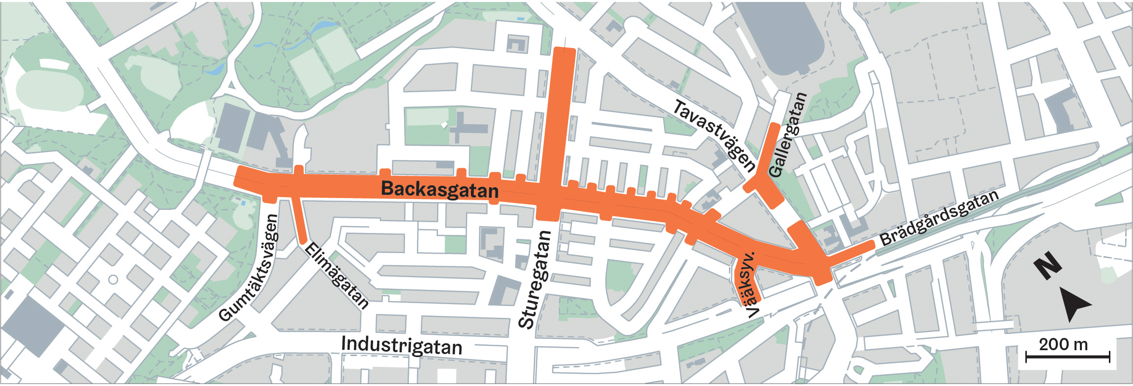 Arbetet med att renovera Backasgatan kommer att inledas första veckan i november med förberedelser av byggarbetsplatsen. Under de följande veckorna (vecka 46 och 47) byggs trafikarrangemangen för byggnadstiden. Det kommer att bli kvar ett körfält i varje riktning för motorfordonen. Trafikstockningar kommer sannolikt att uppstå nu som då.