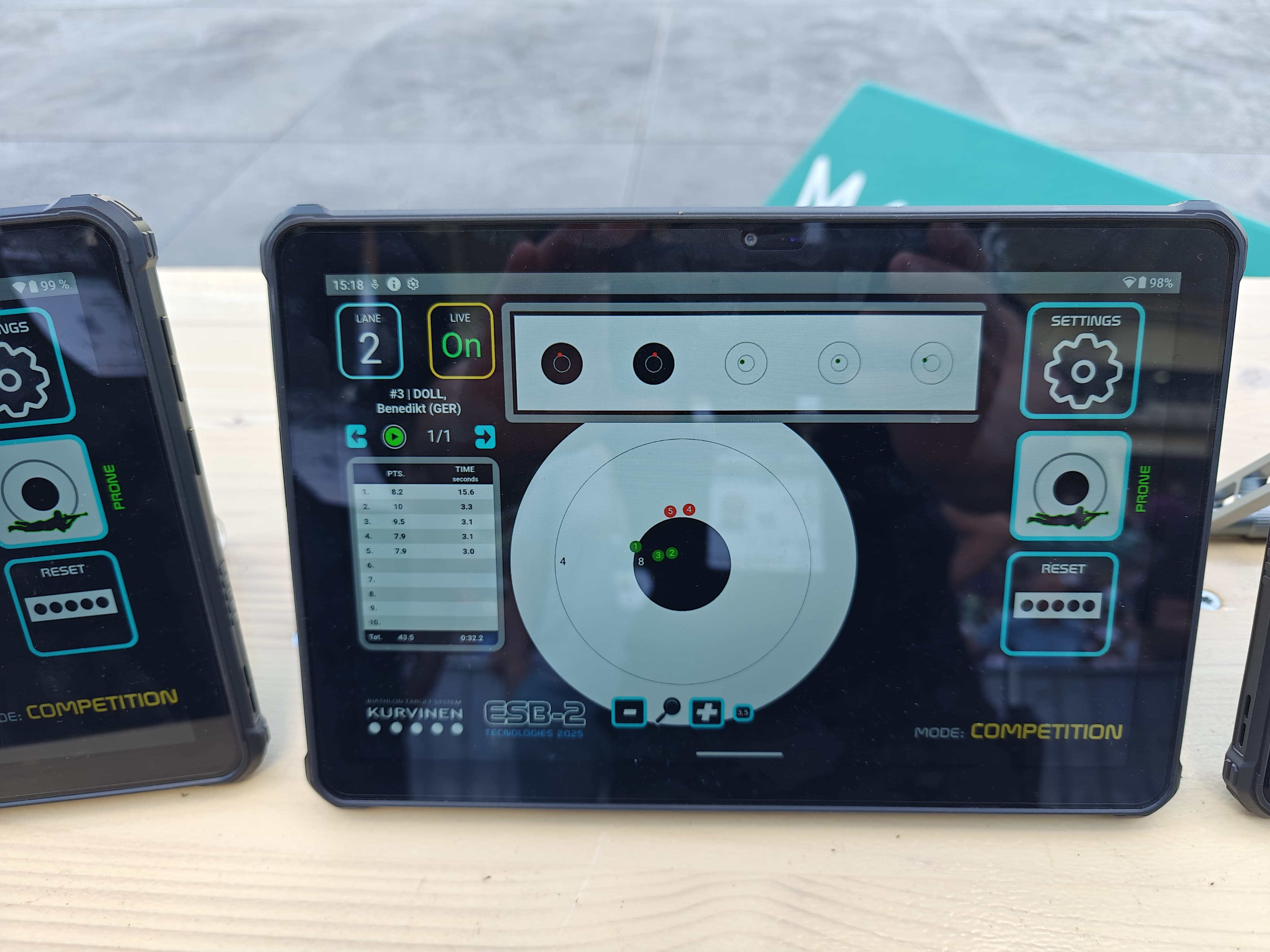 ”Kun luoti kulkee akustiseen kammioon, sen tarkka osumakohta näkyy suorana tv-grafiikassa sekä valmentajien laitteissa. Tämä tuo valmentajille ja tuomareille reaaliaikaista tietoa osumista – ja televisiokatsojille lisää spekuloitavaa”, Kurvinen sanoo.