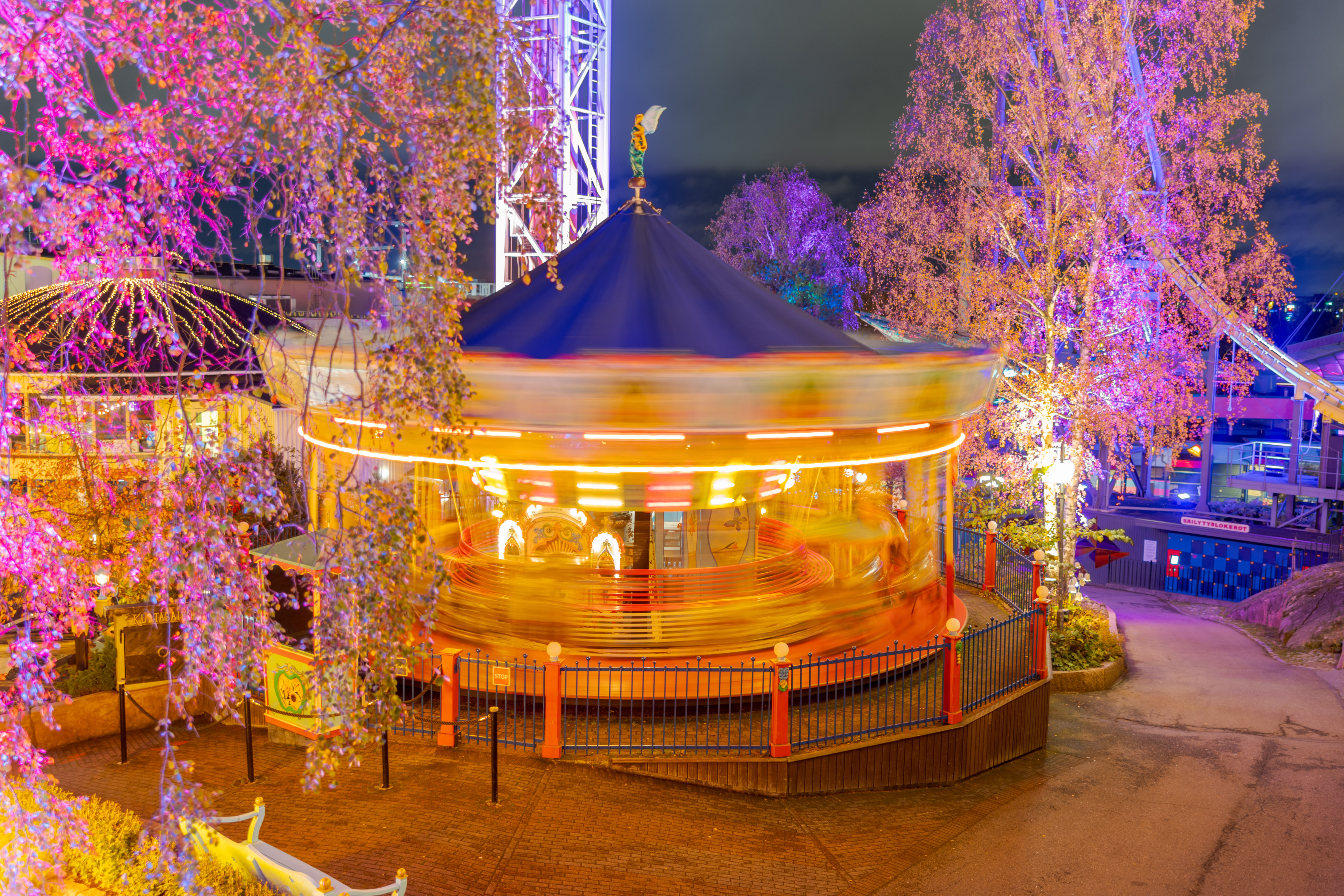 Karuselli pyöritti kutsuvieraita Linnanmäen Valokarnevaalin ennakkotilaisuudessa.