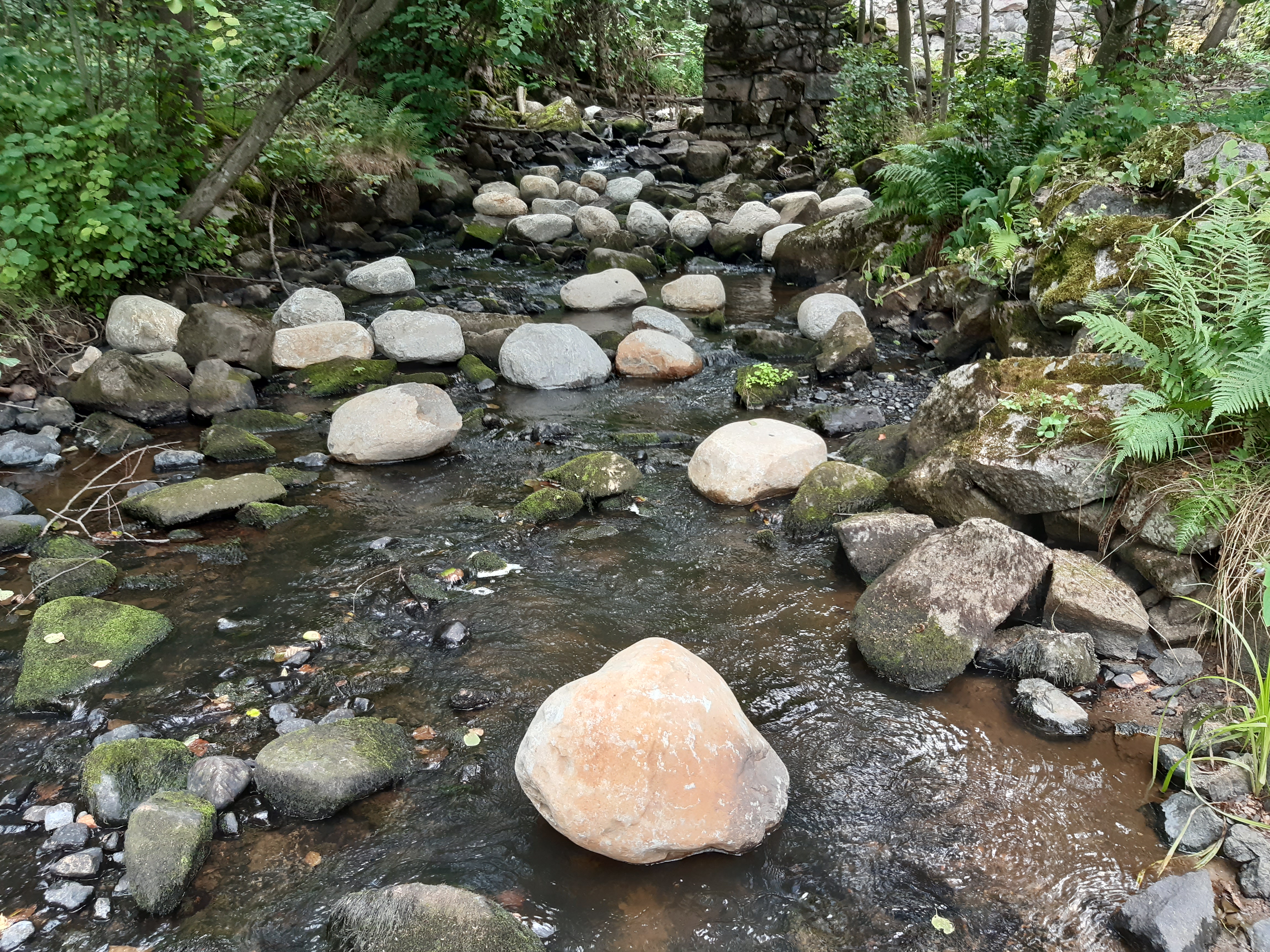 In connection with the restoration, water flow in the riverbed was restored under the direction of running water experts at the ELY Centre. During the restoration, stones were added to the riverbed to dam and guide the water, thus creating eddies where trout can rest and gather their strength on their migration upstream to Lake Bodominjärvi. The stones also offer shelter to trout fry.
