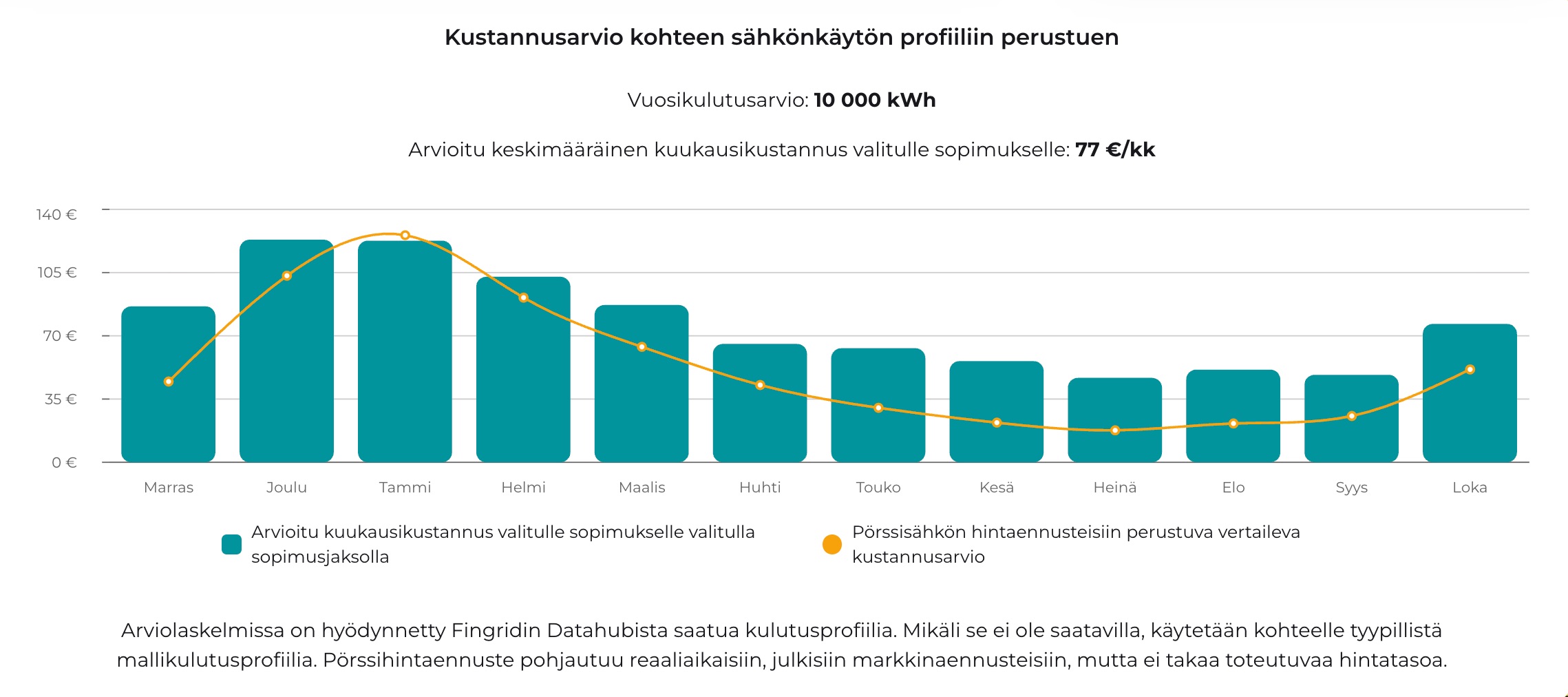Datan lisäksi palvelu huomioi käyttäjän kiinnostuksen ja mahdollisuudet optimoida sähkönkulutustaan. "Monia kuluttajia ei joko kiinnosta, tai heillä ei ole mahdollisuutta kulutuksen joustoon pörssihinnan mukaan, joten halvin spot-marginaali ei aina merkitse yksilöllisesti sopivinta sähkösopimusta”, jatkaa Landén.
