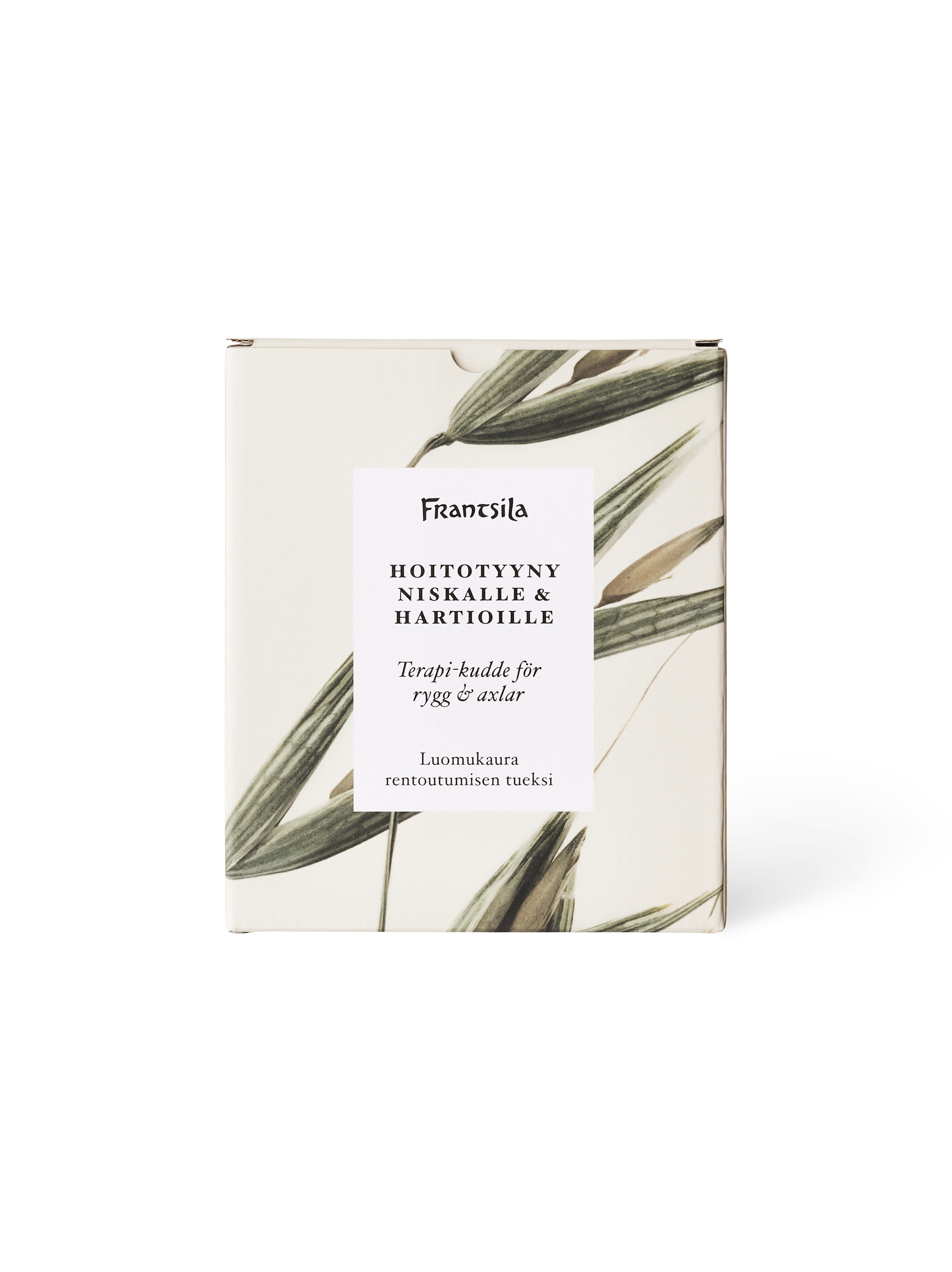 Jokainen kaipaa rentoutumista joskus, oli se sitten lomailua tai pieniä hemmottelun hetkiä arjen keskellä. Frantsilan hoitotyynyt lisäävät hyvää oloa, ja tukevat rentoutumista. Kauratäytteiset hoitotyynyt voi lämmittää tai viilentää tarpeen mukaan. Isommille hoitoalueille, kuten selälle ja vatsalle tai niskalle ja hartioille sopivien hoitotyynyjen lisäksi Frantsilalta löytyy myös silmille ja kasvoille tarkoitettu hoitotyyny, joka on erinomainen esimerkiksi sitkeistä päänsäryistä kärsivälle.