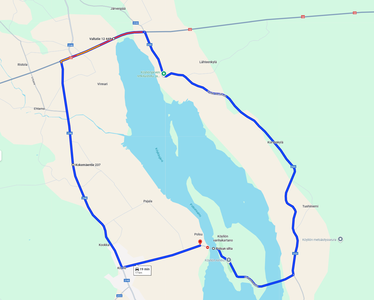Polsun sillan sijainti kartalla (Google Maps) GoogleMaps karttasijainti - Polsun silta, Säkylä