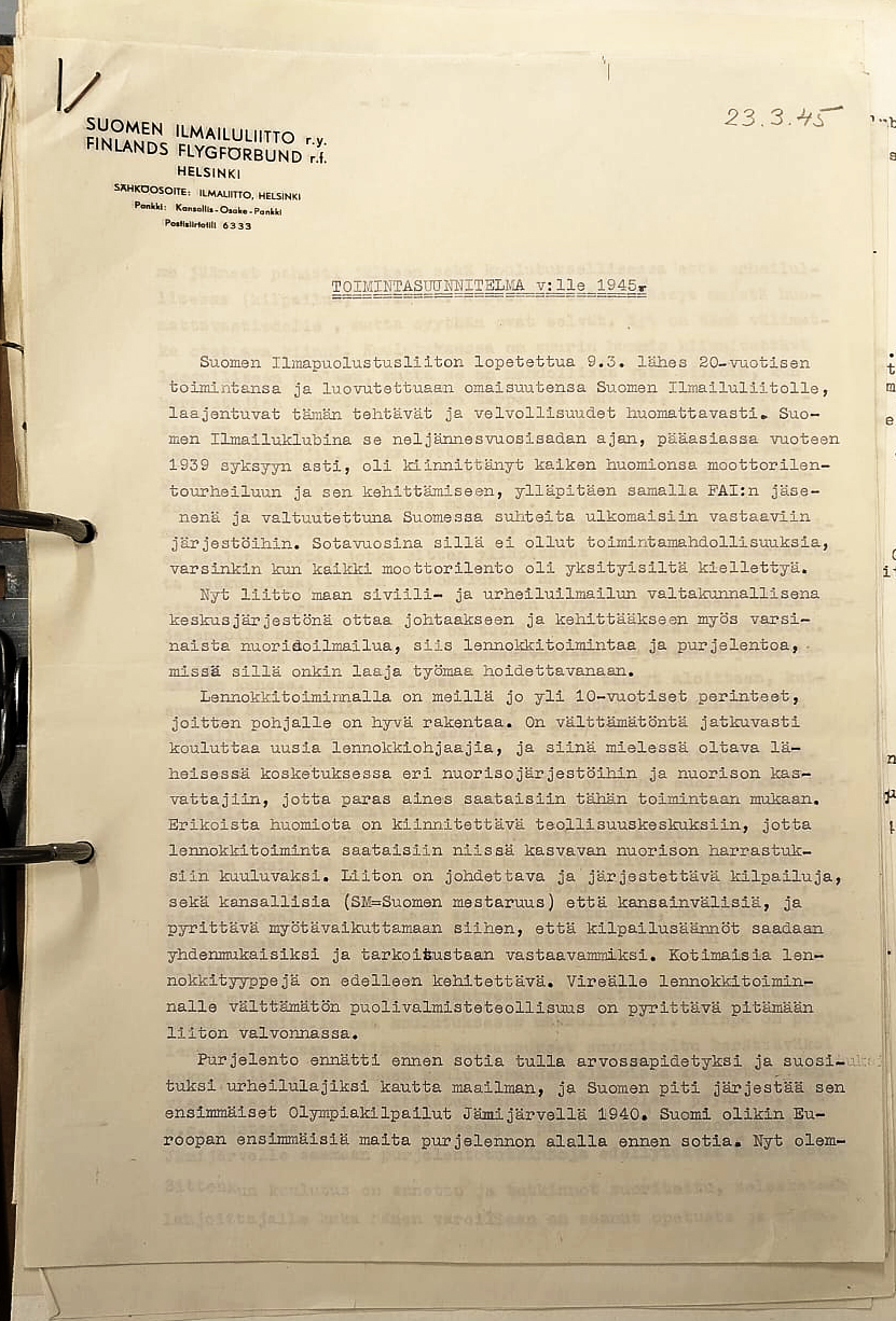 ”Suomen Ilmailuliiton historia on jatkumo kahden ilmailujärjestön, Suomen Ilmailuklubin ja Suomen Ilmapuolustusliiton, historiaa. Nyt suurin osa historiastamme löytyy arkistoituna ja järjestettynä. Kiitos tästä kuuluu Suomen urheilumuseo TAHDOLLE nykyisen Suomen Ilmailuliiton historian ja Suomen ilmailumuseolle Suomen Ilmapuolustusliiton osalta”, sanoo Suomen Ilmailuliiton toiminnanjohtaja Timo Latikka.